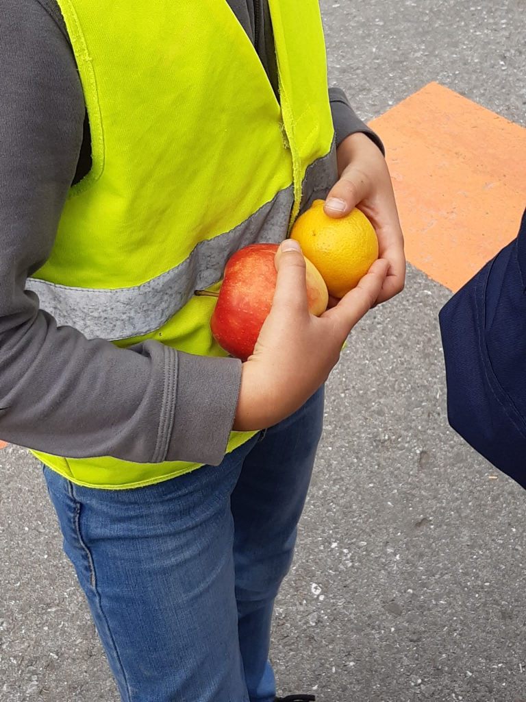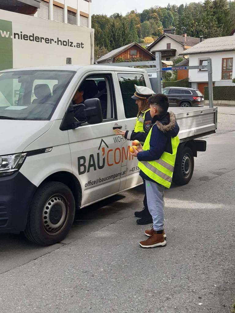 Die Baustelle vor unserer Volksschule bedeutet eine Herausforderung für den Schulweg. In Zusammenarbeit mit der Stadt haben wir eine Veränderung der Verkehrsführung in der Mitteldorfgasse bewirkt. Aber aller Anfang ist schwer. Nicht alle Autofahrer haben sich gerade zu Beginn an die geänderten Verkehrsregeln gehalten. Um auf die Veränderung hinzuweisen, und nicht gleich Strafzettel zu verteilen, haben wir gemeinsam mit der Stadtpolizei am Dienstag, den 4.10. die Aktion „Süßes oder Saures“ durchgeführt. Bei der Aktion hat die Klasse 4R zusammen mit Frau Huber von der Polizei die „Richtigfahrer“ mit einem Apfel belohnt und die „Falschfahrer“ mit einer Zitrone getadelt.