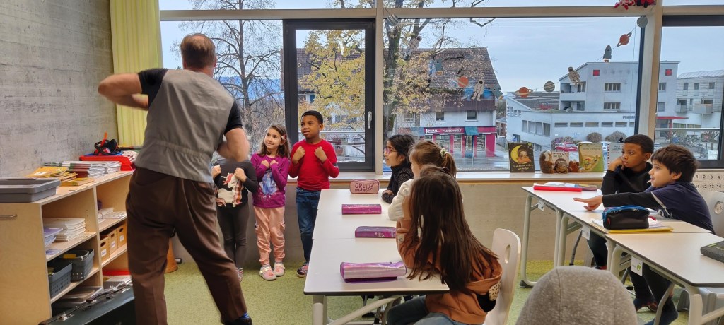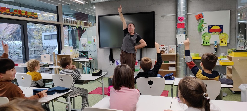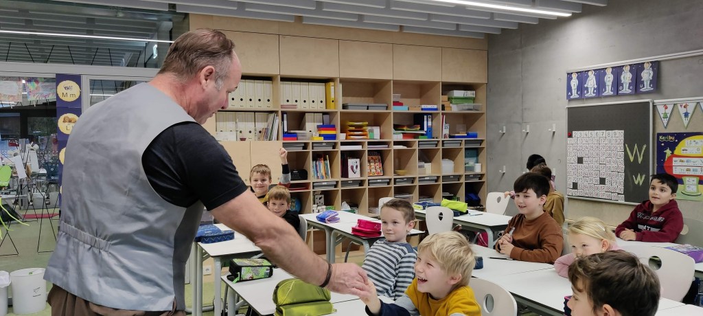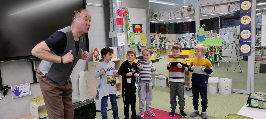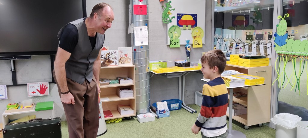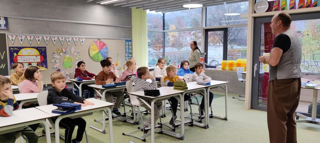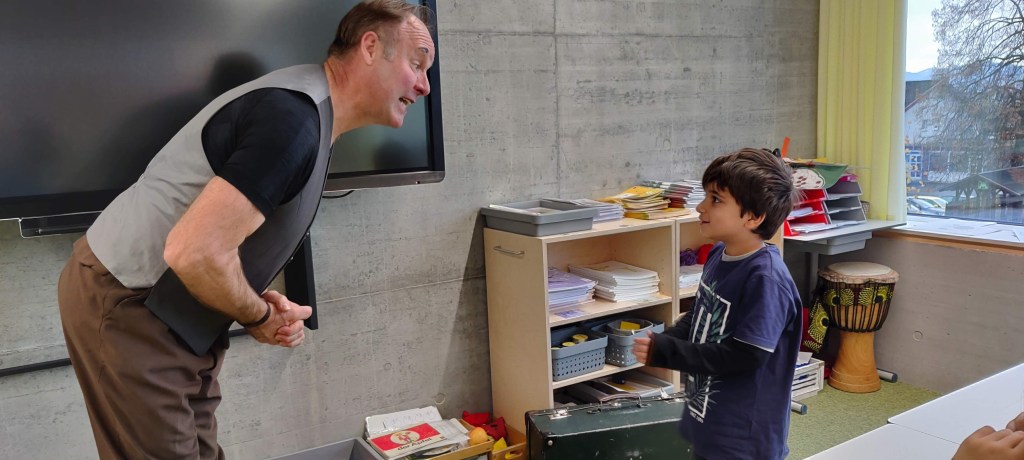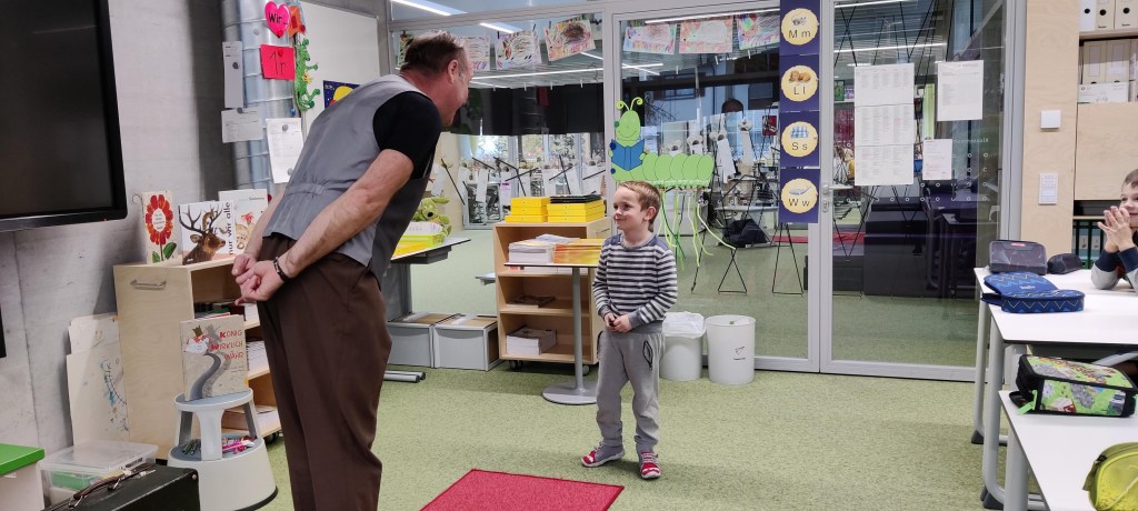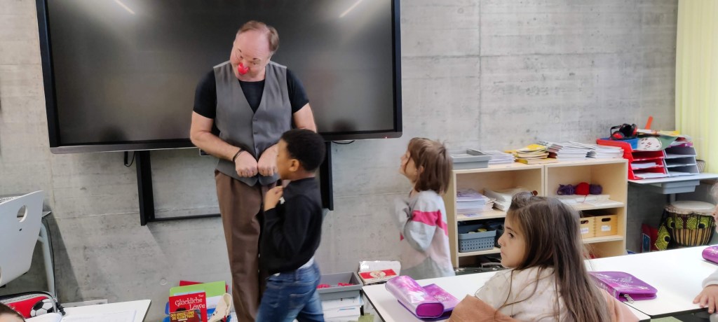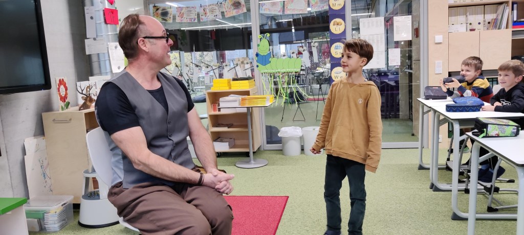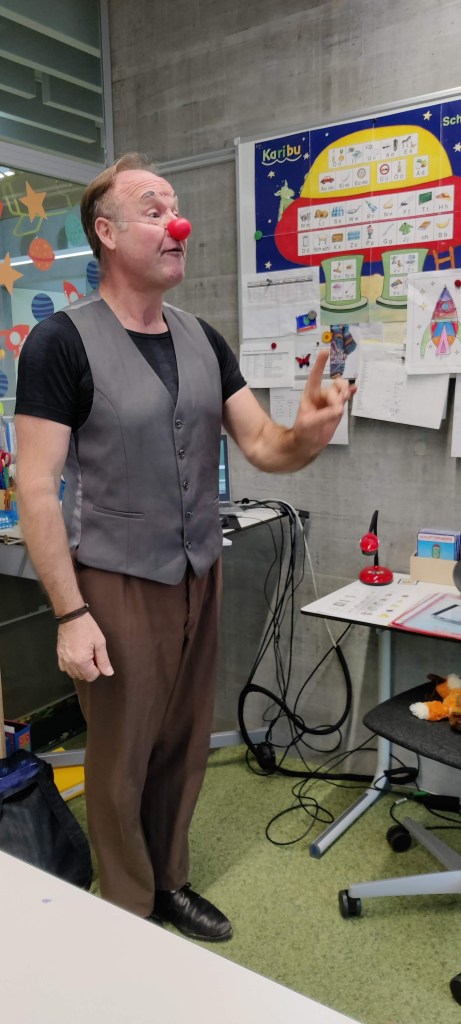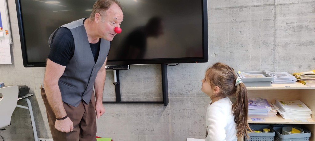 Bitte, Danke, Entschuldigung, Guten Tag – all das sind die einfachsten Höflichkeitsregeln, die schon Kinder lernen können und beherrschen sollten. Höflichkeit kann am besten humorvoll erarbeitet und in Rollenspielen eingeübt werden. Aus diesem Grund besuchte auch dieses Jahr wieder Pantomime & Clown Thiemo Dalpra die Schüler*innen der ersten Klasse der Volksschule Haselstauden.