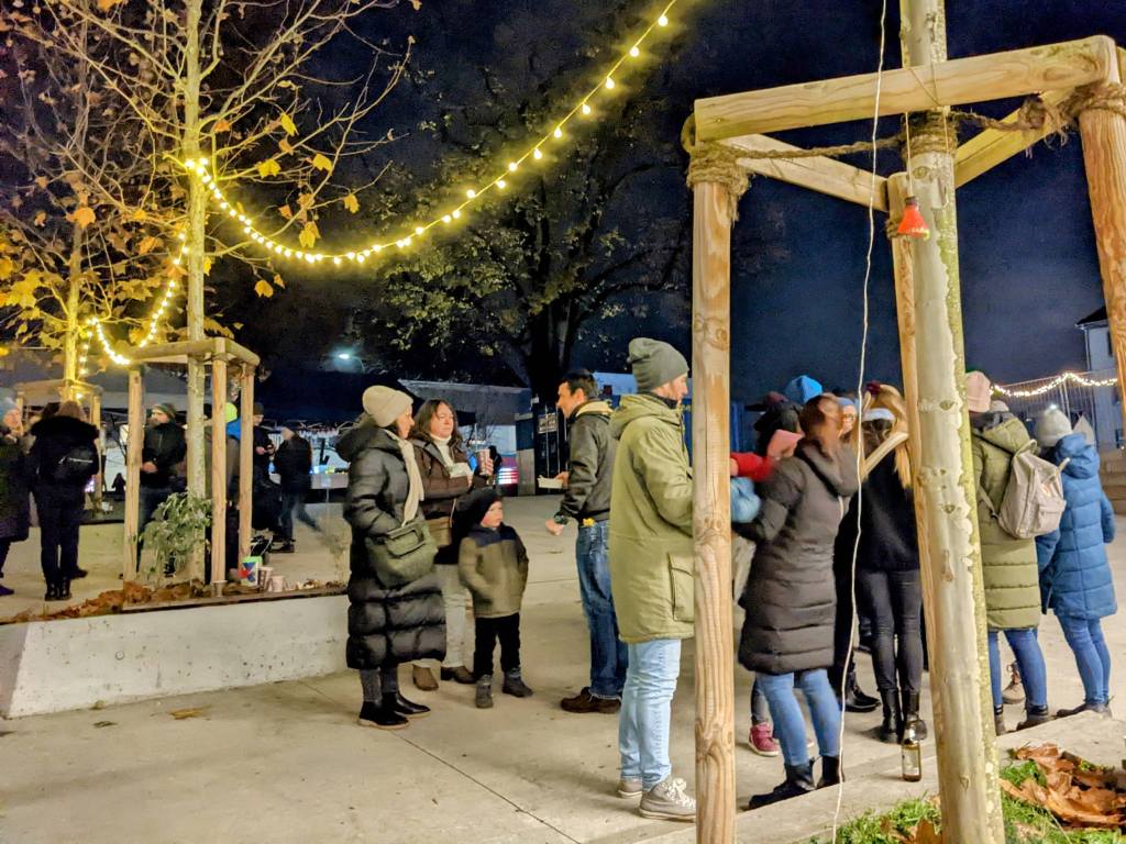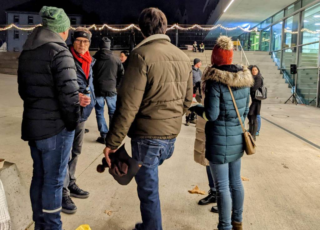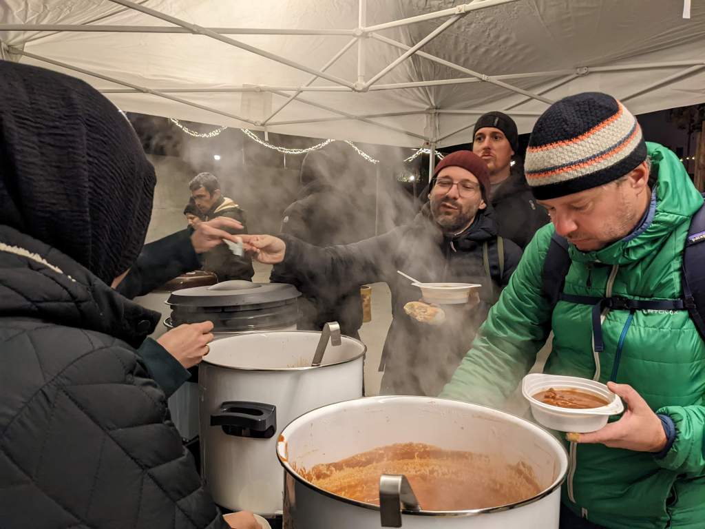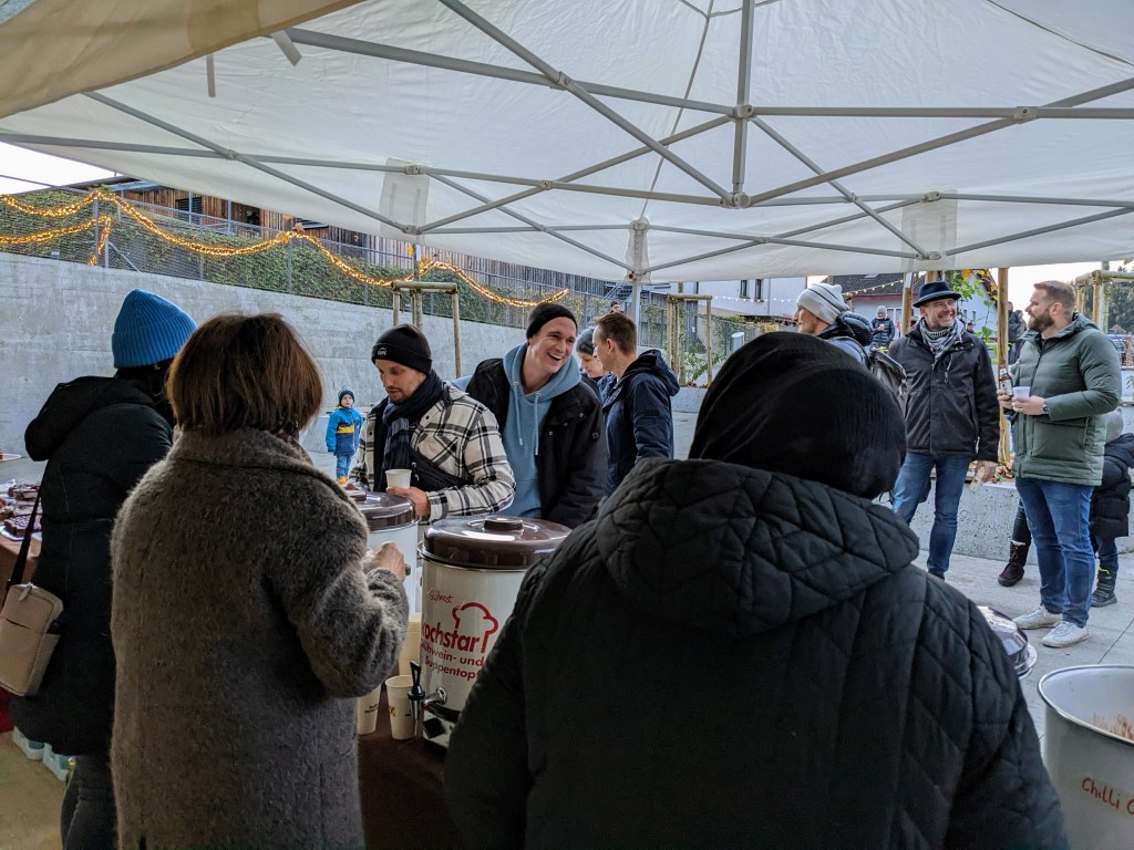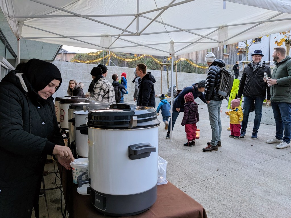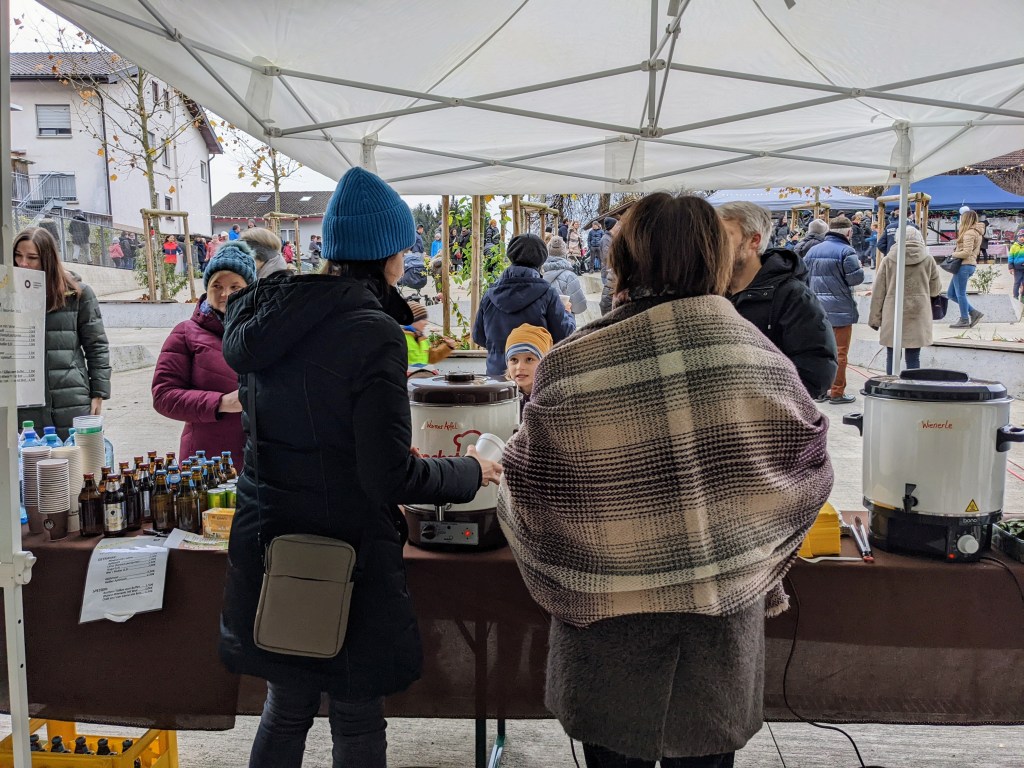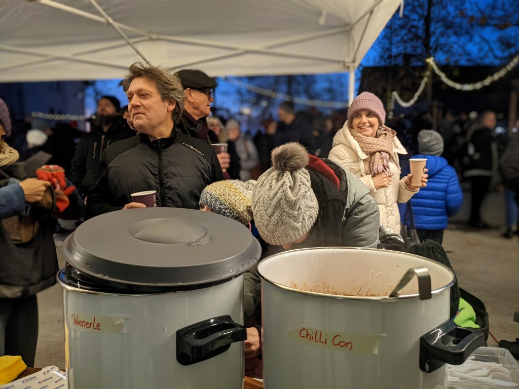Nach den Aufführungen wurde es langsam dunkler. Zum Aufwärmen bei den frostigen Temperaturen gab es heißen, winterlichen Apfelsaft, Glühmost und Chilli con/sin carne.