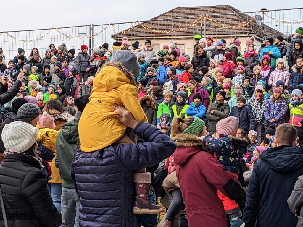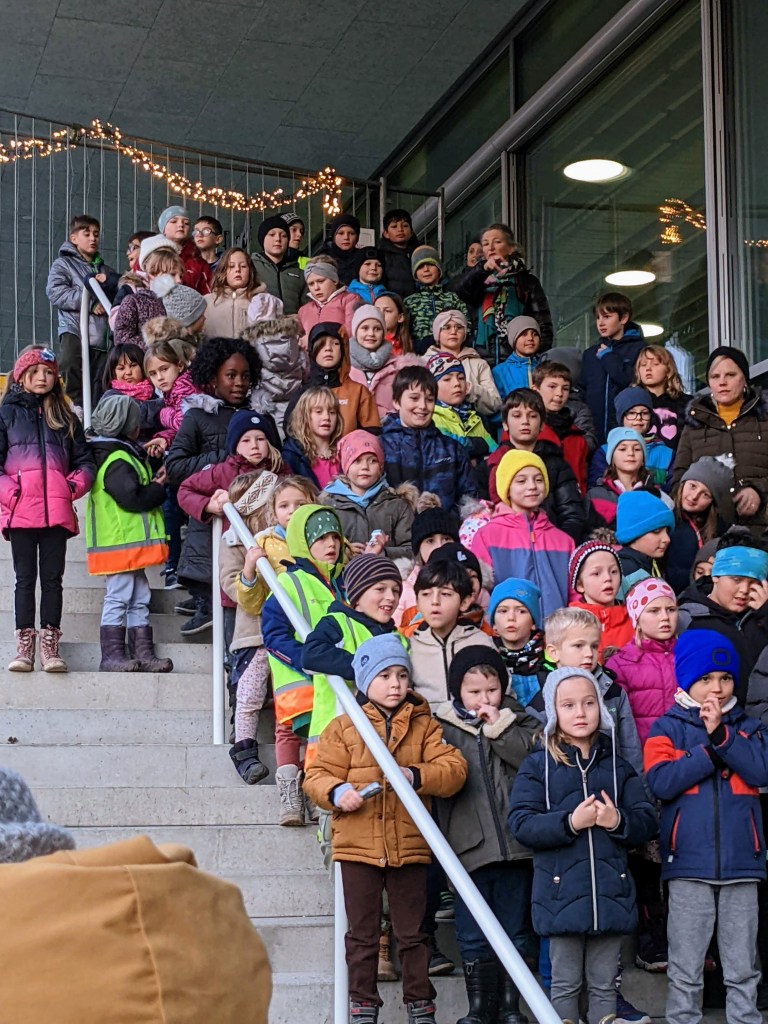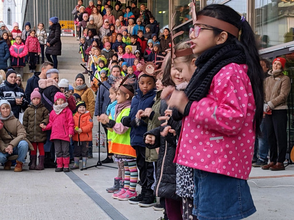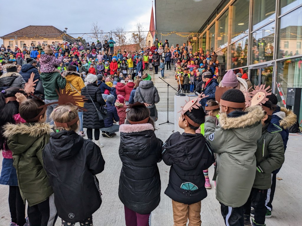 Um 16Uhr trafen die Familien mit ihren Kindern ein und das Lichterfest wurde von Direktor Jürgen Sprickler eröffnet. Auch der Kindergarten Haselstauden, quasi die zukünftigen Schüler*innen der VSHS, nahmen am Lichterfest teil und eröffneten die Vorführungen mit dem Lied „Kleines Licht, Kerzenschein“. Anschließend präsentierten die drei Lernquartiere, sowie die Raketenklasse ihre einstudierten Lieder.