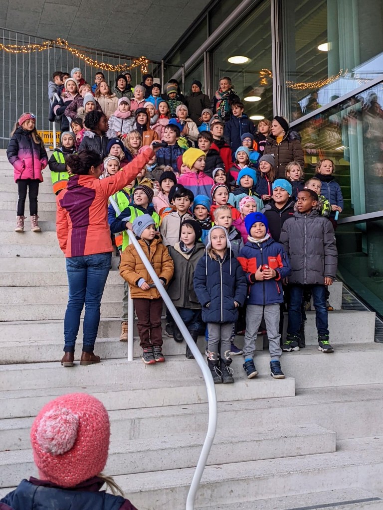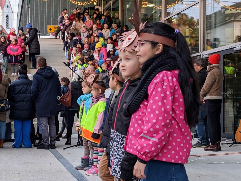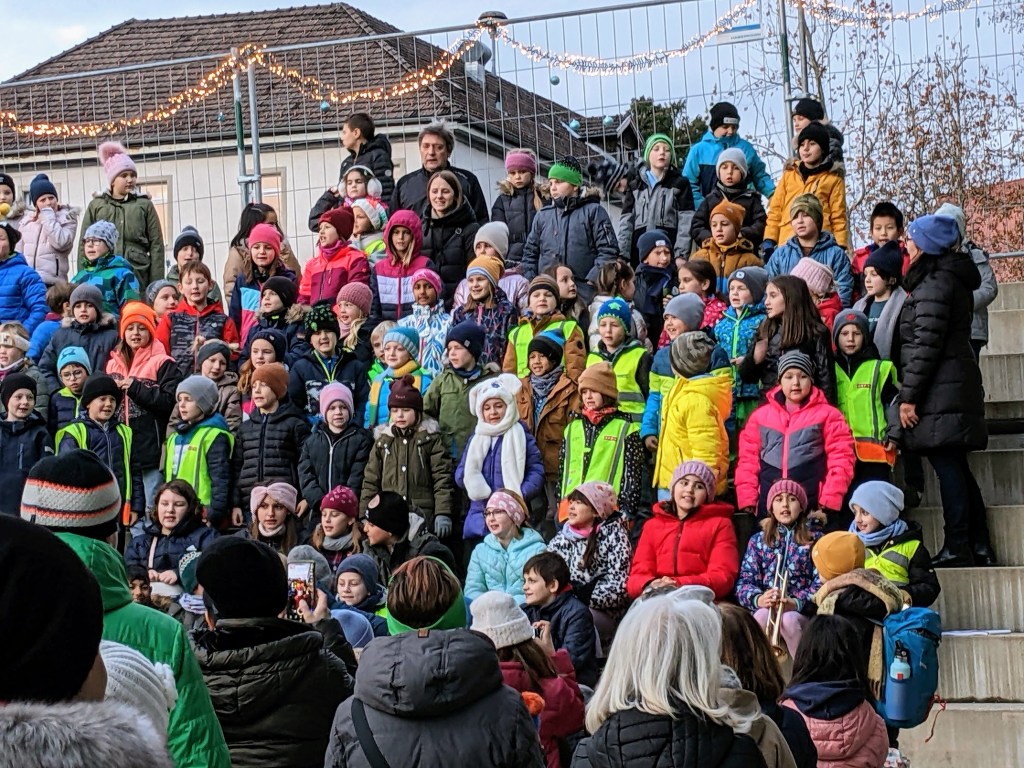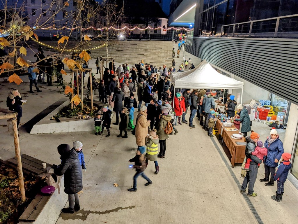 Um 16Uhr trafen die Familien mit ihren Kindern ein und das Lichterfest wurde von Direktor Jürgen Sprickler eröffnet. Auch der Kindergarten Haselstauden, quasi die zukünftigen Schüler*innen der VSHS, nahmen am Lichterfest teil und eröffneten die Vorführungen mit dem Lied „Kleines Licht, Kerzenschein“. Anschließend präsentierten die drei Lernquartiere, sowie die Raketenklasse ihre einstudierten Lieder.