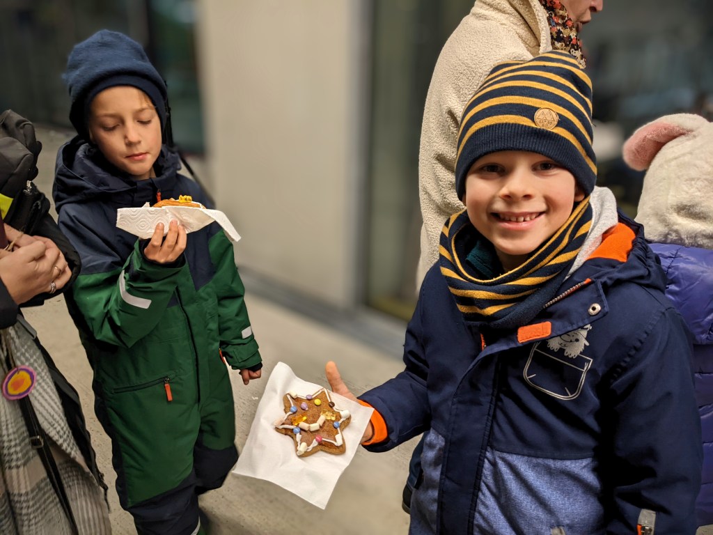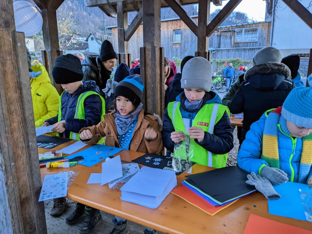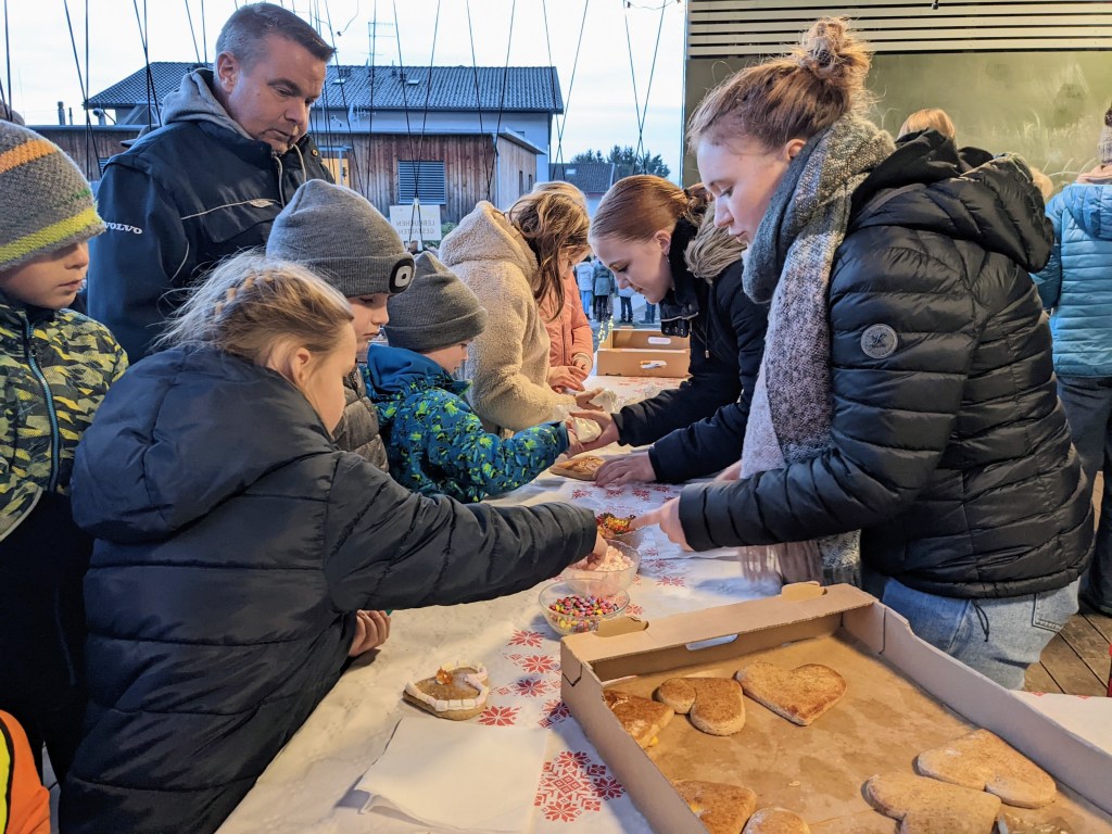 Ein Highlight für die Kinder war das „Lebkuchen gestalten“. Ein herzlicher Dank nochmals an die „Fachschule für wirtschaftliche Berufe“ aus Haselstauden (https://fw-dornbirn.vobs.at/ ) und an die Direktorin Dagmar Waibel-Mätzler, die in der Woche vor dem Lichterfest 300 Lebkuchen gebacken haben. 10 Schülerinnen der Fachschule dekorierten liebevoll mit den Schüler*innen der Volksschule die vorgebackenen Lebkuchen während des Lichterfestes.