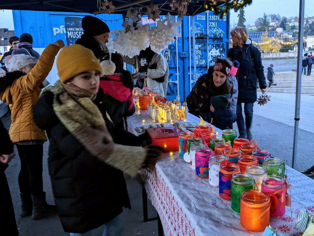 Am vergangenen Freitag, den 2.12.22, fand das diesjährige Lichterfest an der Schule statt. Bereits einige Wochen zuvor begannen die Vorbereitungen. Die Schüler*innen bastelten fleißig für den Adventsmarkt und übten Lieder. Die Eltern haben gebacken, gekocht und den Schulhof mit Lichterketten dekoriert. Zelte wurden mit Unterstützung von ein paar Schülern aufgebaut.
