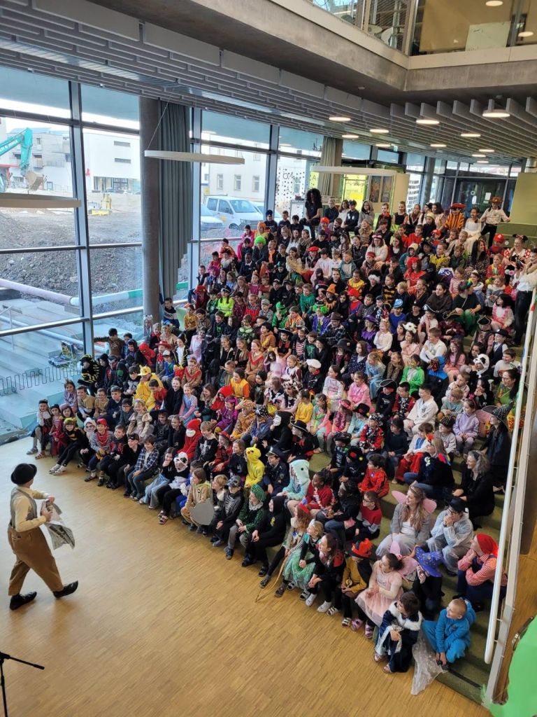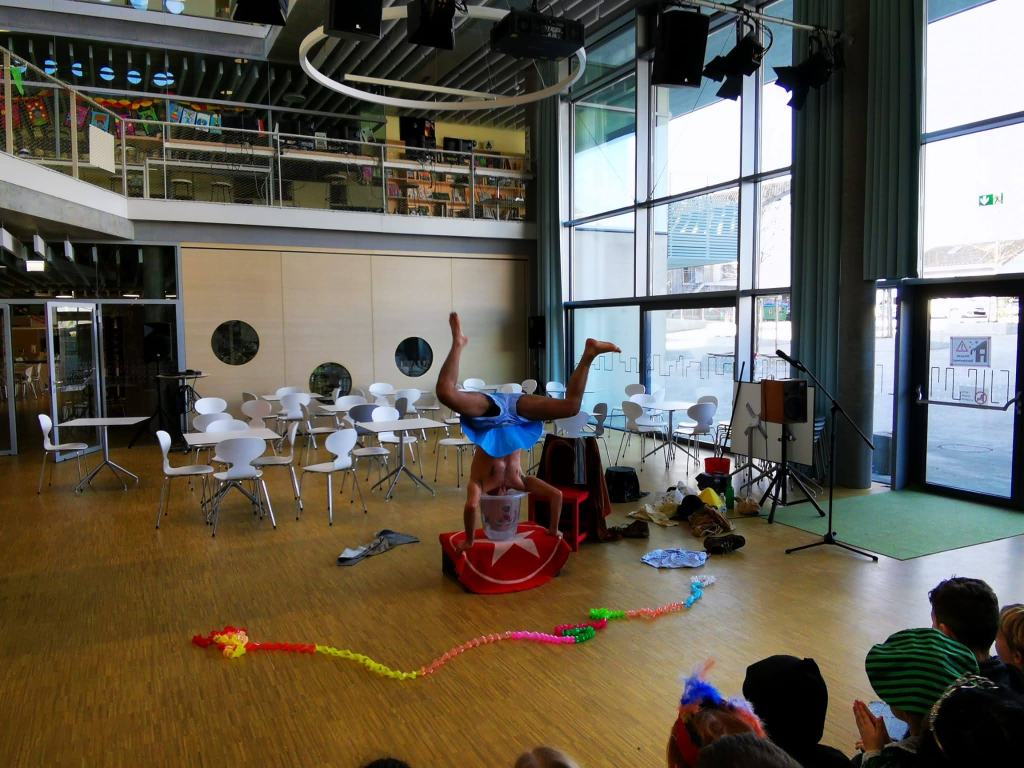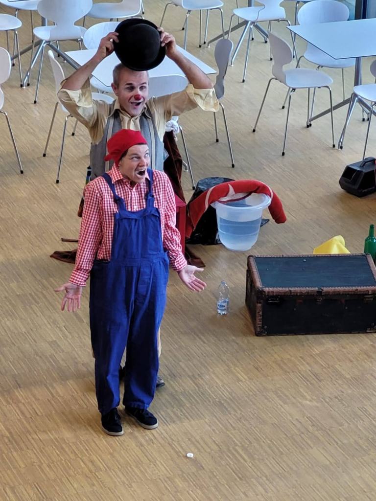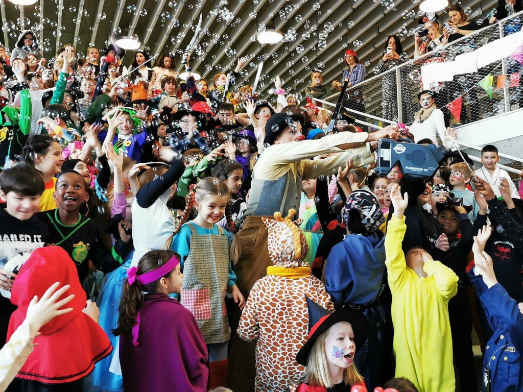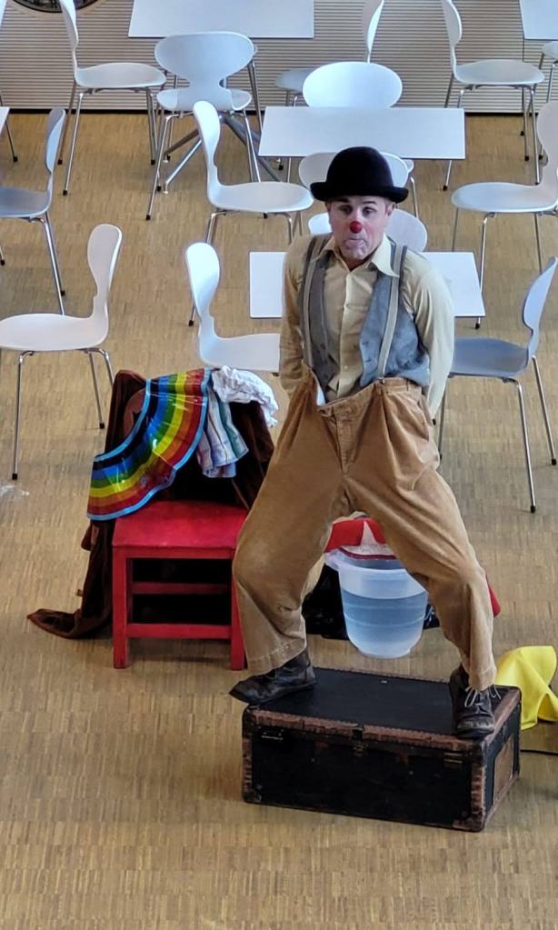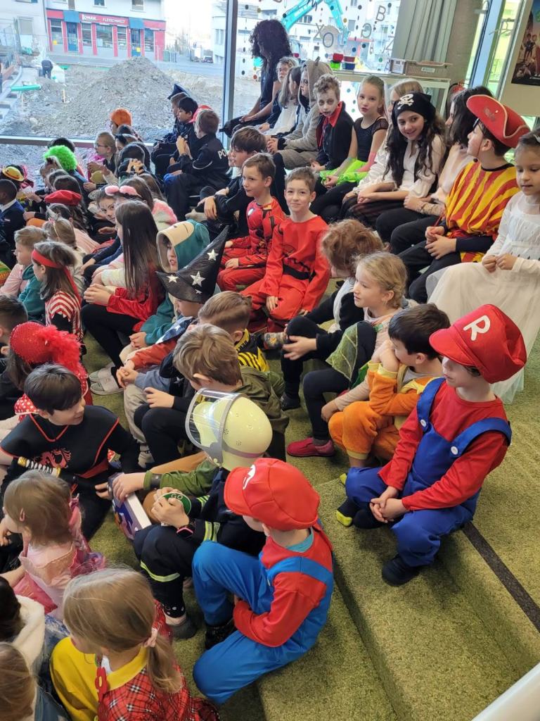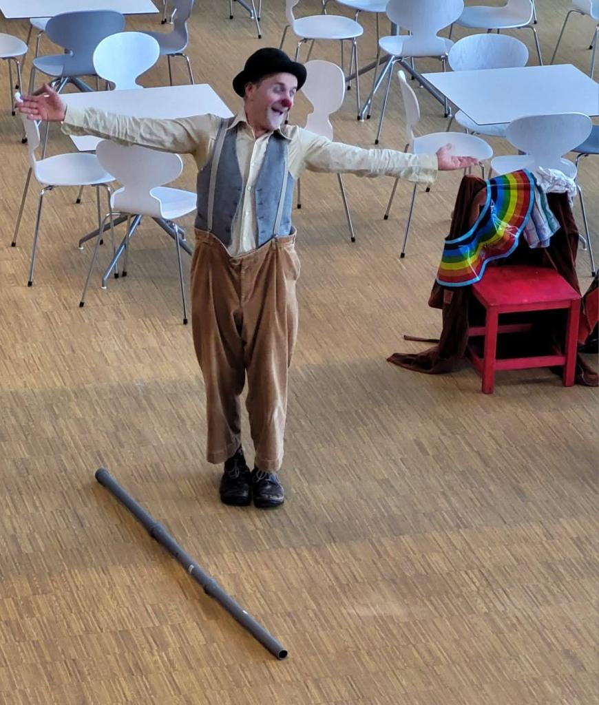 Am Rosenmontag, den ersten Tag nach den Semesterferien, durften die Schülerinnen und Schüler maskiert in die Schule kommen. Ein buntes Programm in den Lernquartieren erwartete die Kinder. Ein leckerer Krapfen durfte dabei natürlich nicht fehlen. Das absolute Highlight für alle war aber der Besuch von Clown Pompo. Seine Show hat alle begeistert!