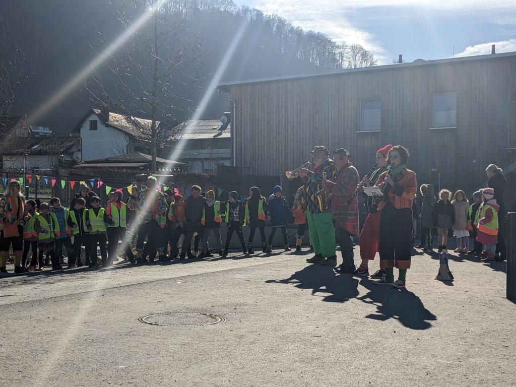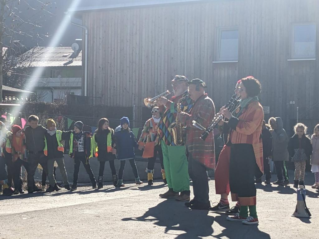 Der Faschingsdienstag war nur ein kurzer Schultag für die Schülerinnen und Schüler der VS Haselstauden. Gegen 11:15Uhr wurden die Kinder überrascht mit Spaß und Gesang der Faschingszunft. Anschließend wurden die Schüler*innen offiziell „entlassen“.