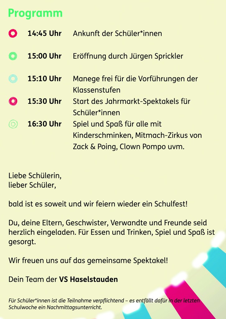 Einladung zum Schulfest Verfasst vonElternverein21. April 202321. April 2023Veröffentlicht inAktuelles Teilen mit: Auf X teilen (Wird in neuem Fenster geöffnet) X Auf Facebook teilen (Wird in neuem Fenster geöffnet) Facebook Gefällt mir Wird geladen … Ähnliche Beiträge