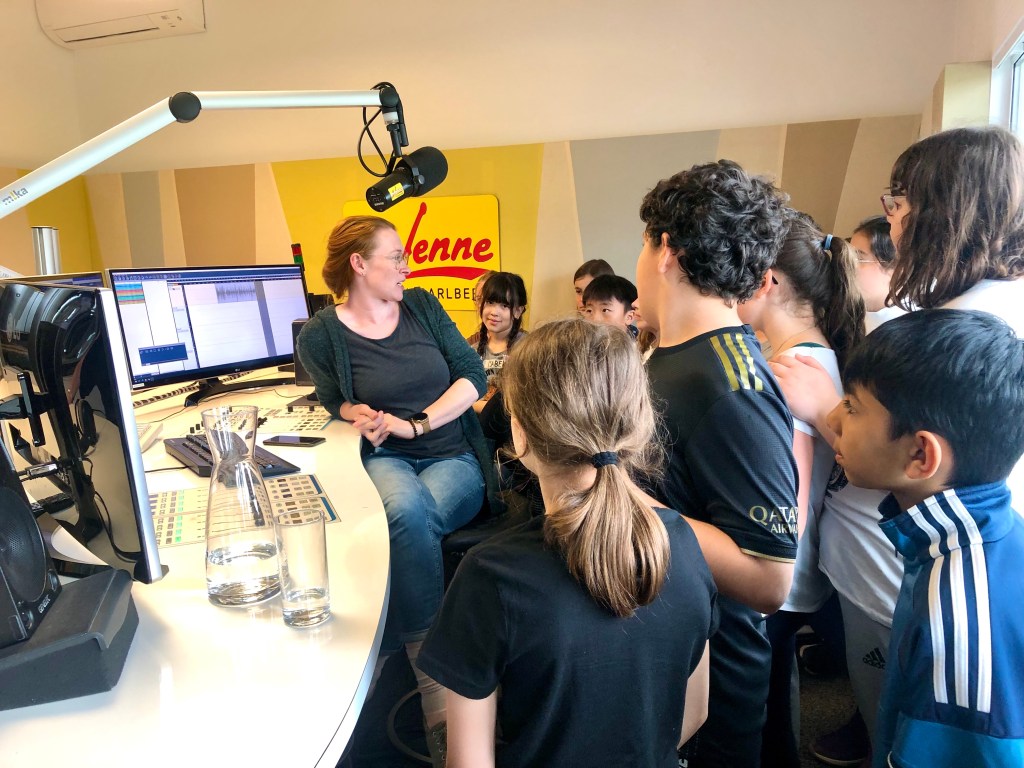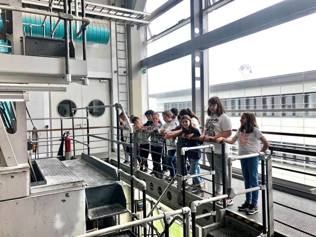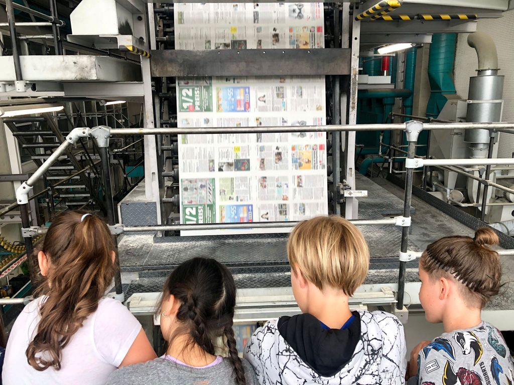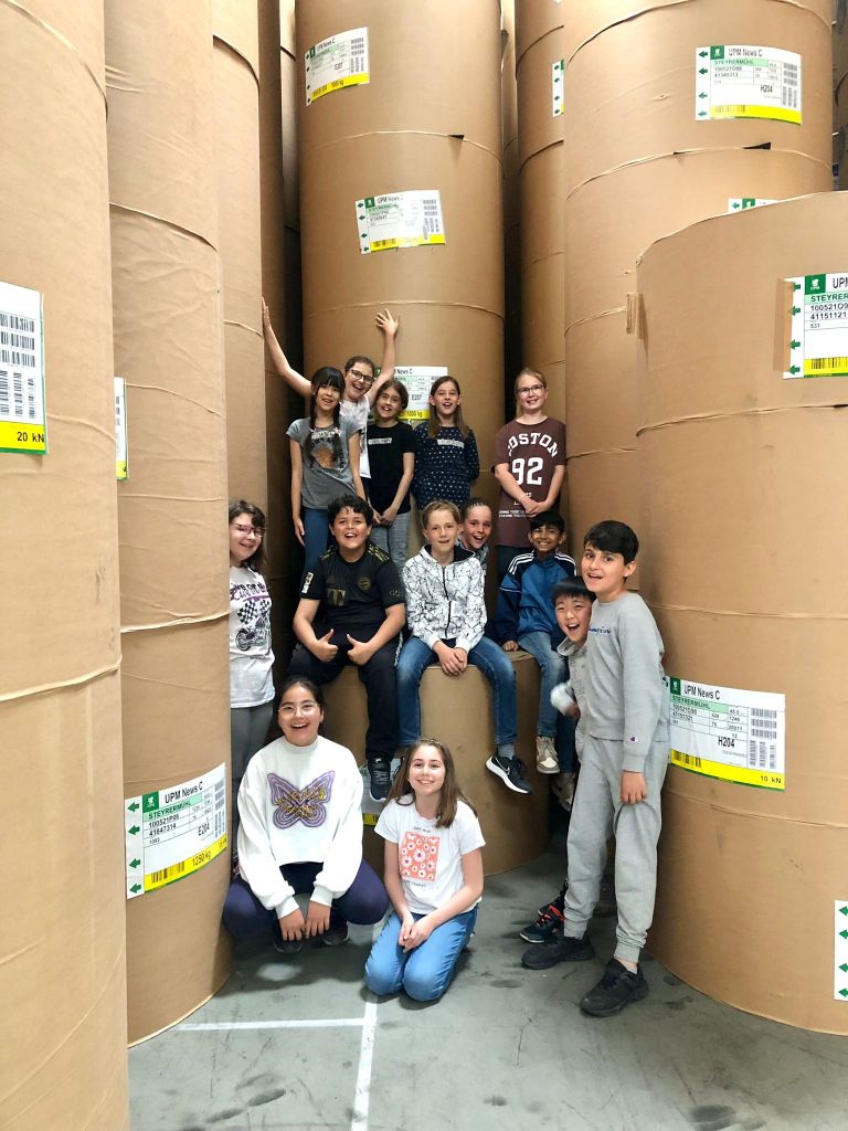 Letzte Woche war die 4r-Klasse in der Freizeitstunde bei Russmedia zu Gast. Dort wurde ihnen der Betrieb vorgestellt und eine Führung ermöglicht. Zuerst besuchten die Schüler*innen das Antenne Vorarlberg-Studio, wo ihnen erklärt wurde, was ein*e Radiomoderator*in den ganzen Tag so macht. Danach ging es in die imposante Druckerei, wo der Prozess des Offsetdrucks beobachtet werden konnte. Im riesengroßen Papierlager wurde Pause gemacht, und die Kinder durften herumtollen, laut sein und Verstecken spielen. Anschließend wurde noch die Versandabteilung angeschaut, wo die Zeitungen verpackt und dann in den Lieferwagen geladen werden. Zum Abschluss gab es noch eine kleine Stärkung und Überraschung.