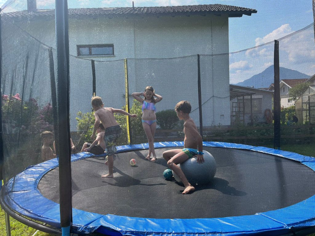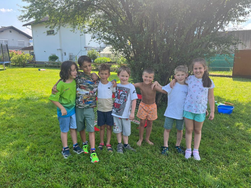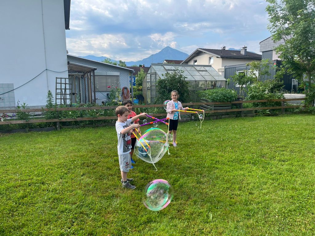 Es wurde Fußball gespielt, Seil gesprungen, Trampolin gehüpft und Riesenseifenblasen gemacht. Bei strahlendem Sonnenschein sorgte eine Wasserschlacht für Abkühlung.