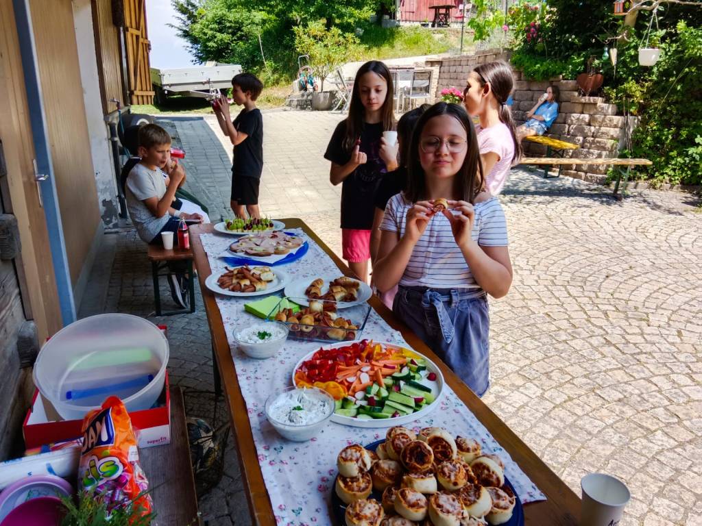 Wir hatten ein buntes Programm mit Buffet und vielen Spielen. Die Spiele konnte man nur im Teamwork schaffen. Es war für jeden was dabei.