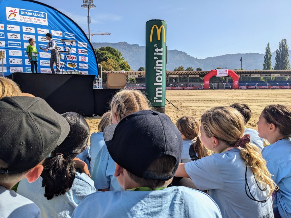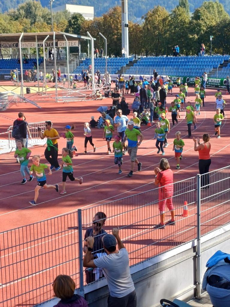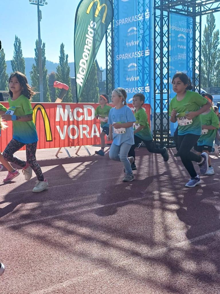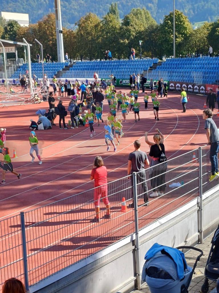 Bei wunderschönem, sonnigen Herbstwetter fand heute der diesjährige Kindermarathon in Bregenz statt. Ungefähr 50 Schulkinder der VS Haselstauden nahmen teil gemäß dem Motto „Rennen statt pennen“.