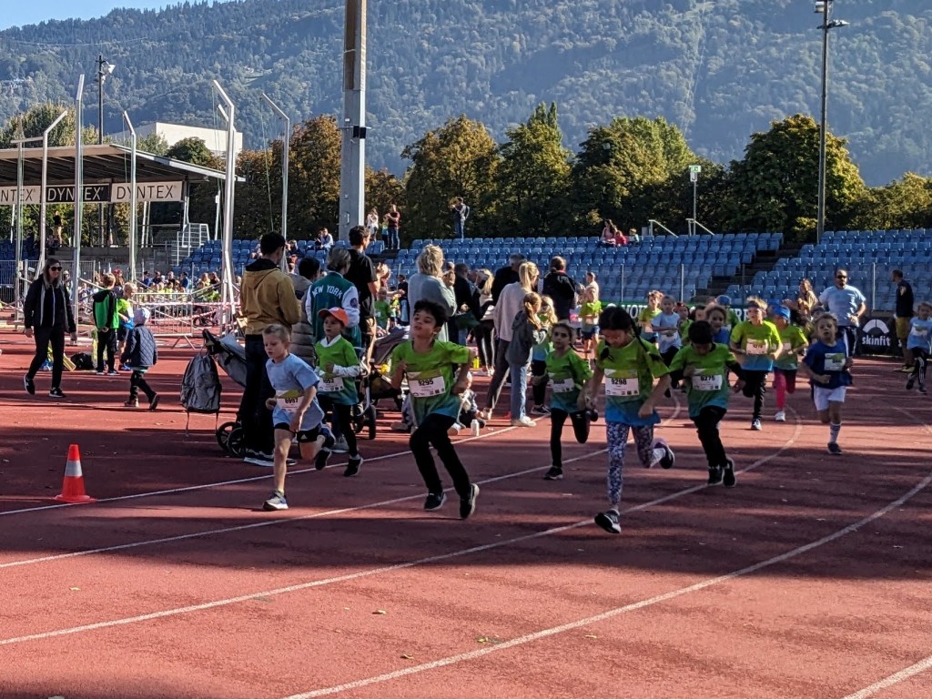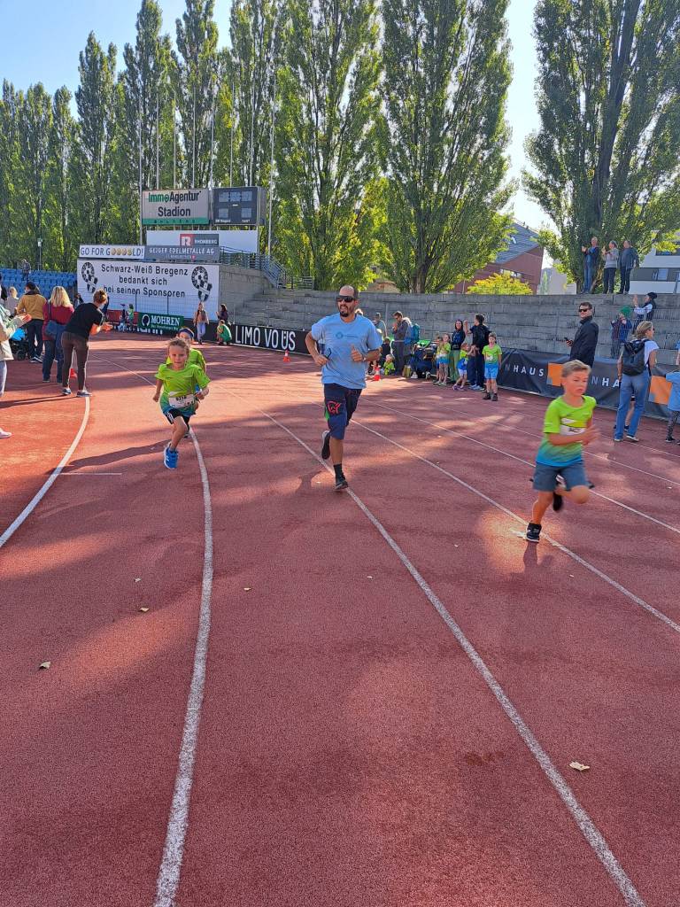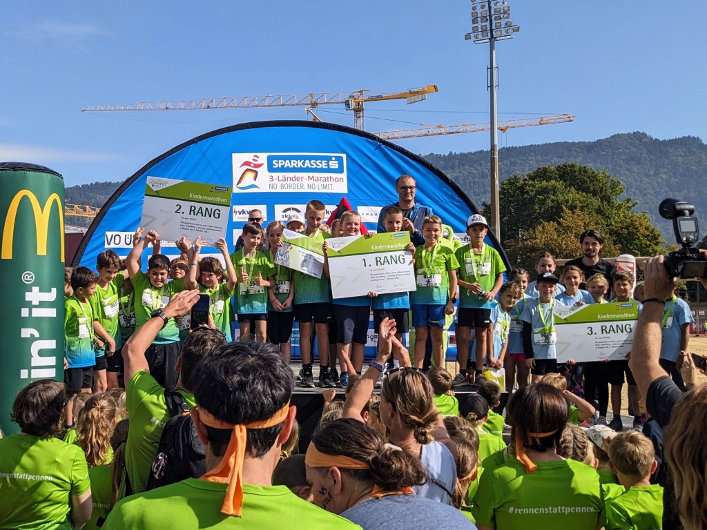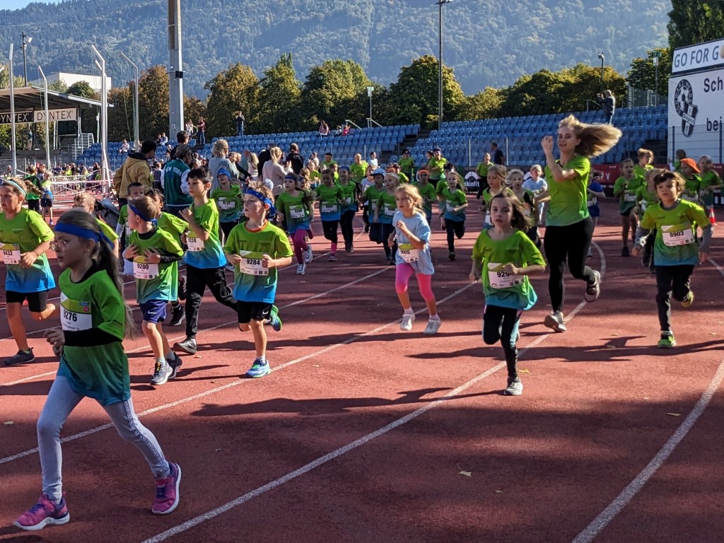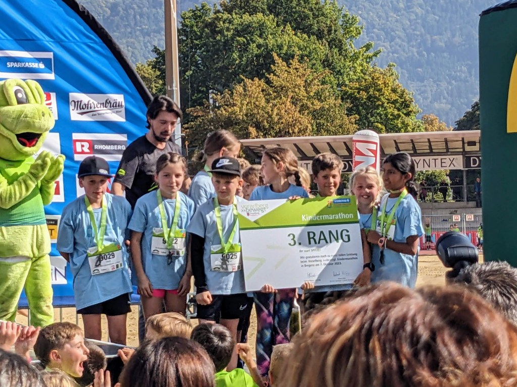 Bei wunderschönem, sonnigen Herbstwetter fand heute der diesjährige Kindermarathon in Bregenz statt. Ungefähr 50 Schulkinder der VS Haselstauden nahmen teil gemäß dem Motto „Rennen statt pennen“.