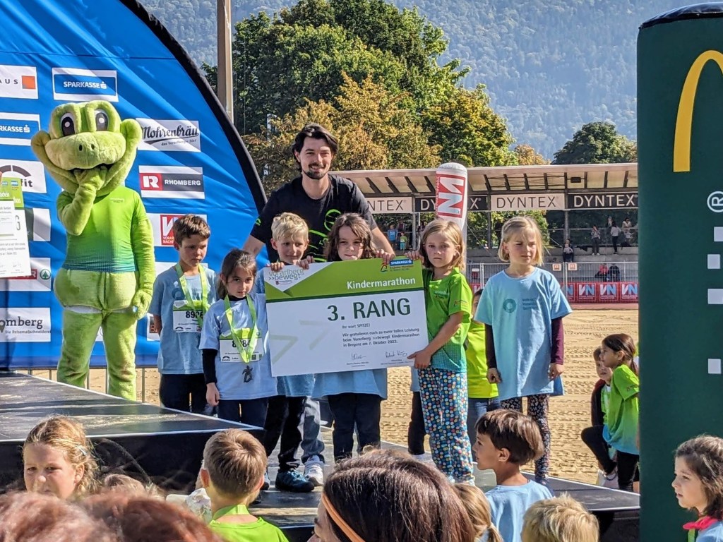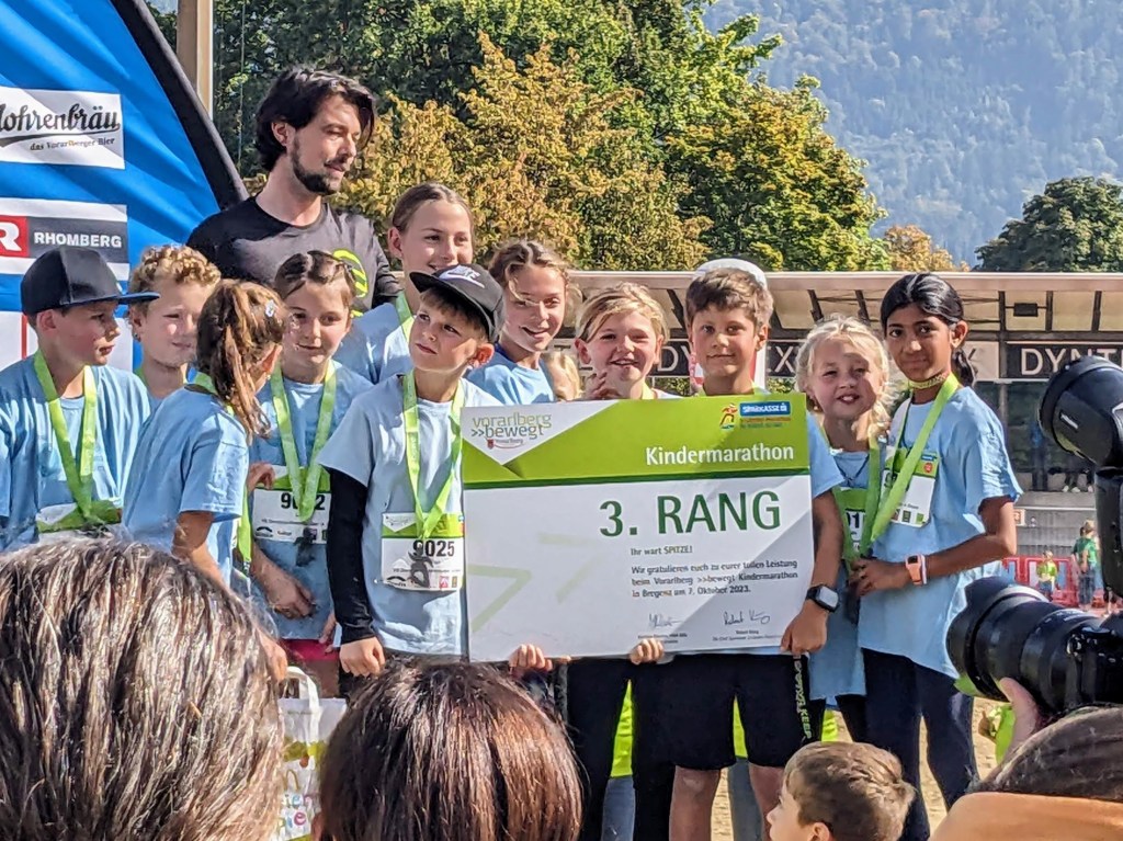 Zeit für die Siegerehrung. Wir gratulieren allen Läuferinnen und Läufern der VS Haselstauden für das super Ergebnis. Insbesondere der 1. und 4. Klasse, die jeweils den 3. Rang erreicht haben.