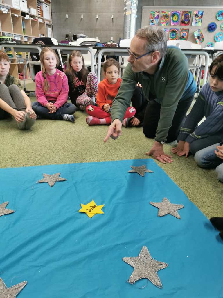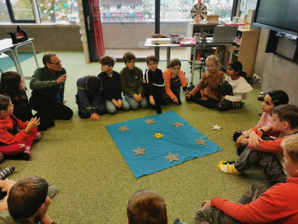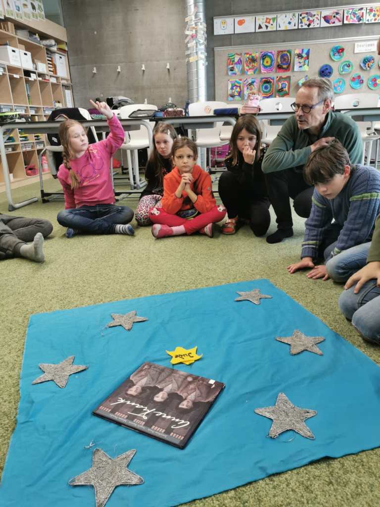 Der ehemalige Direktor Jürgen Sprickler besuchte die Klasse 4R und sprach mit den Schülerinnen und Schlülern der Klasse 4R zu dem aktuellen Thema Antisemitismus.