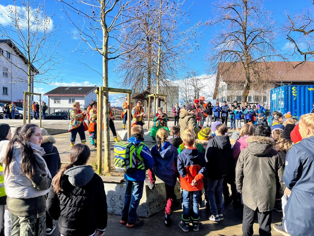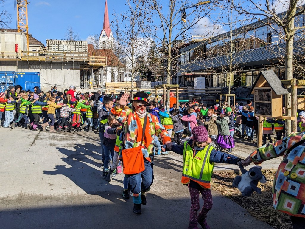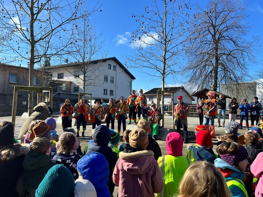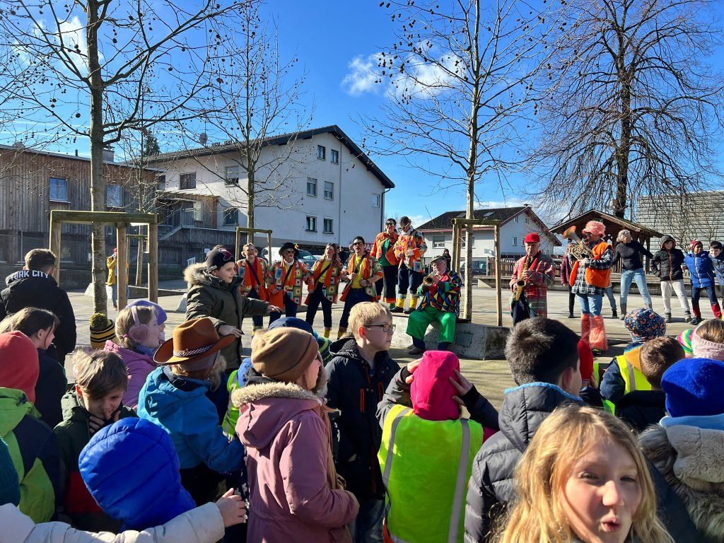 Um 11:15 Uhr endete für die Schülerinnen und Schüler der Volksschule Haselstauden der Faschingsdienstag 2024 in der Schule – als die Faschingszunft mit Musik und Tanz aus dem Schulhaus lockte.