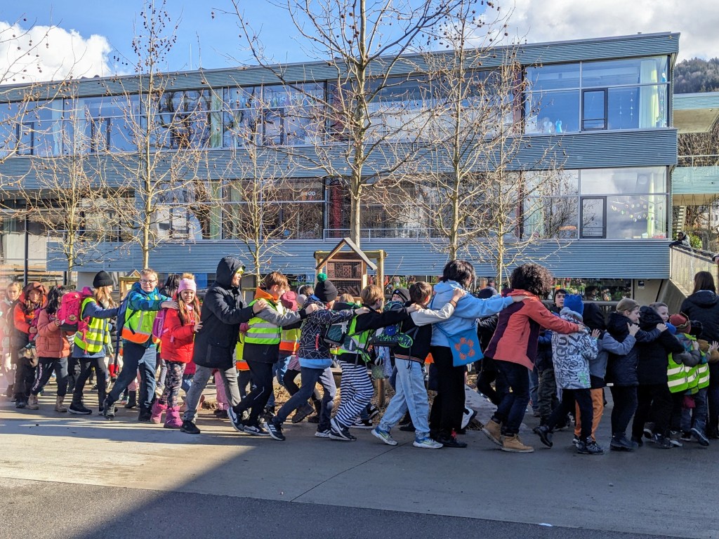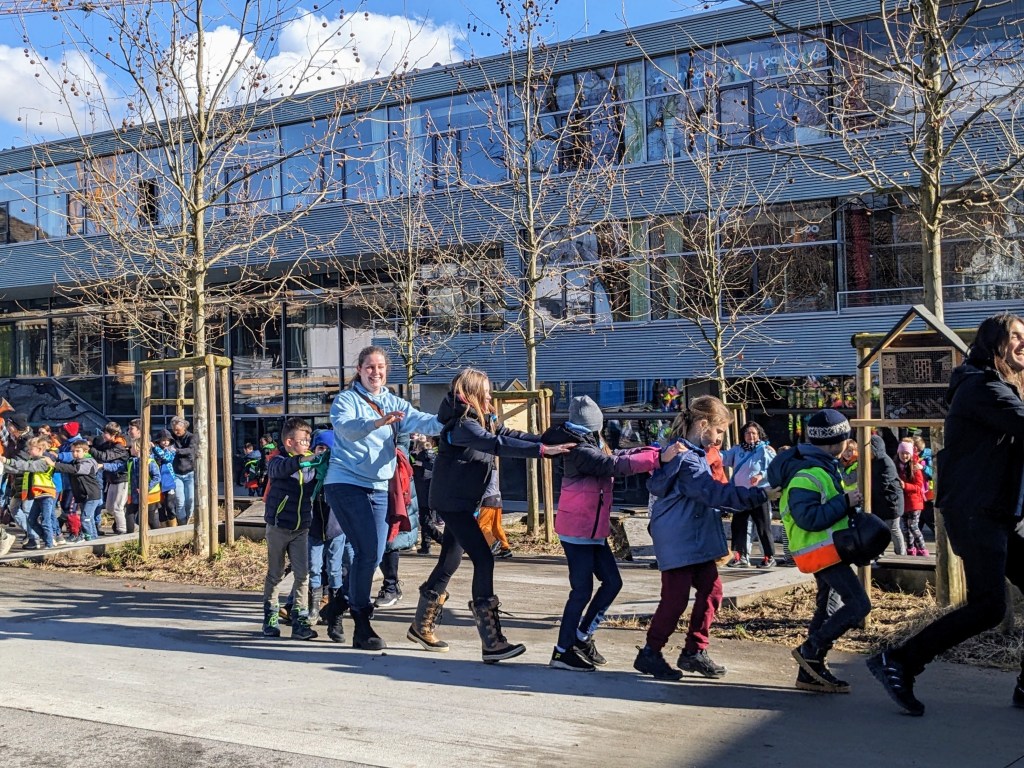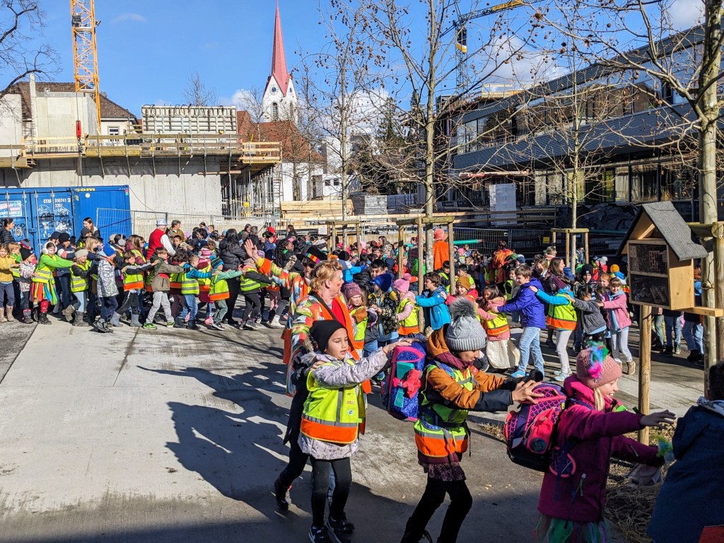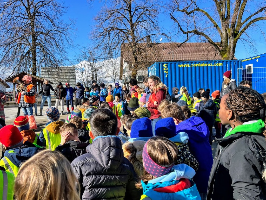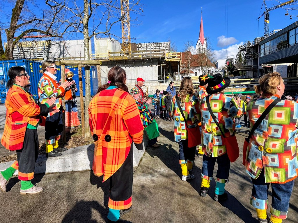 Um 11:15 Uhr endete für die Schülerinnen und Schüler der Volksschule Haselstauden der Faschingsdienstag 2024 in der Schule – als die Faschingszunft mit Musik und Tanz aus dem Schulhaus lockte.