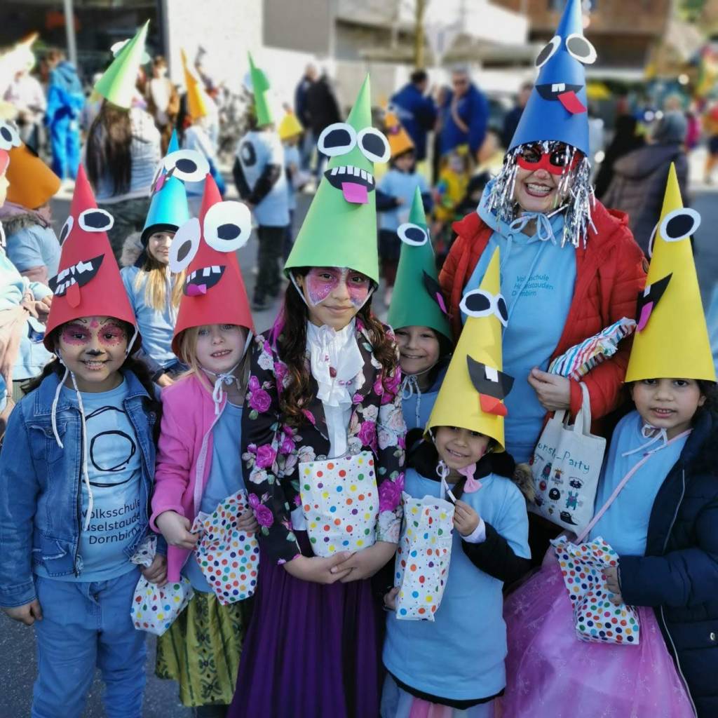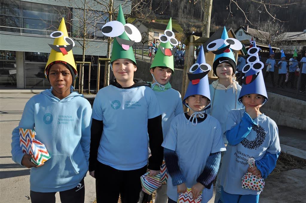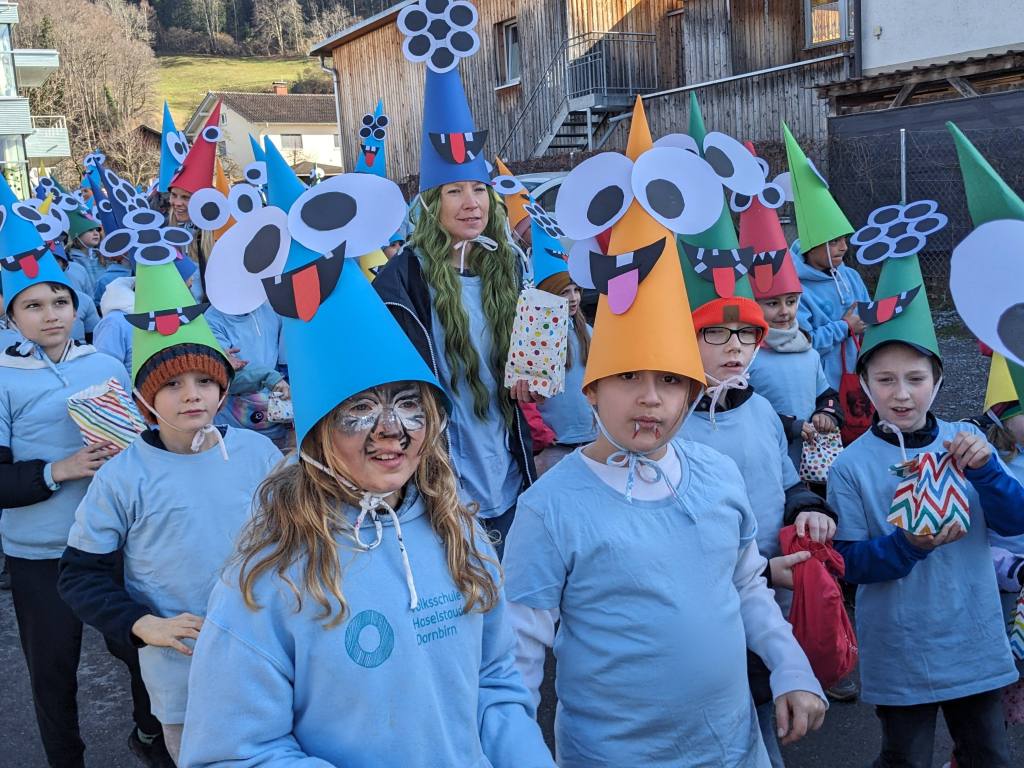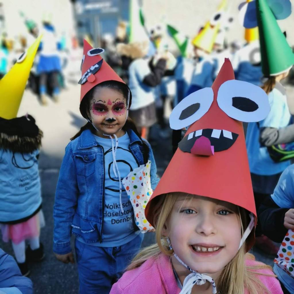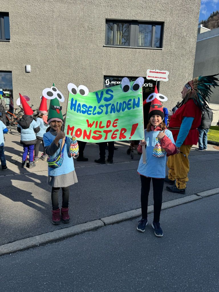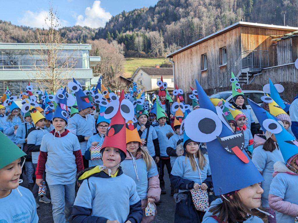 Wie im Jahr zuvor fand der Faschingsumzug in Haselstauden wieder bei traumhaften Wetter statt. Nach der „Befreiung“ der Kinder am späten Vormittag durch die Faschingszunft ging es um 13:30Uhr für die Schulkinder weiter. An ihrem jeweiligen Treffpunkt verwandelten sich die Klassen in „wilde Monster“ – ihre Kostüme, die sie in den Tagen zuvor gemeinsam gebastelt haben.