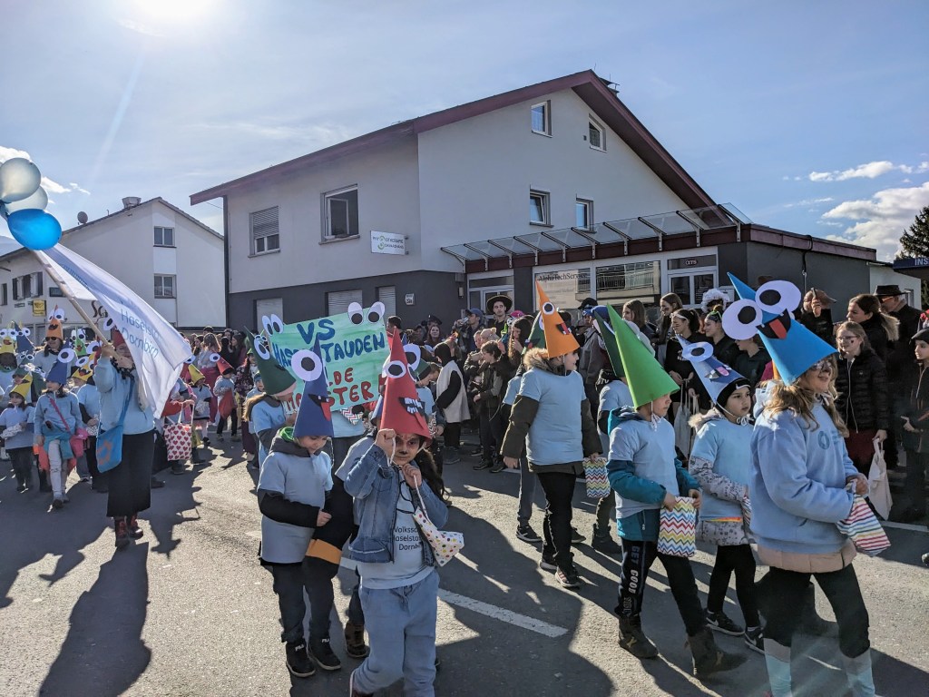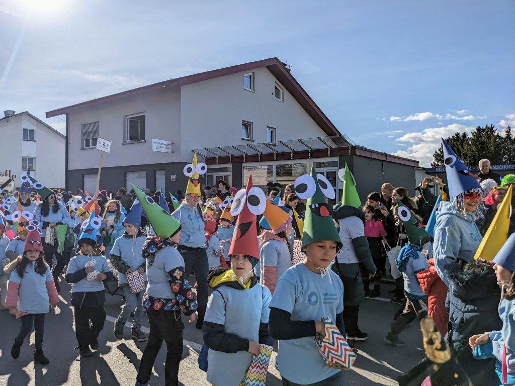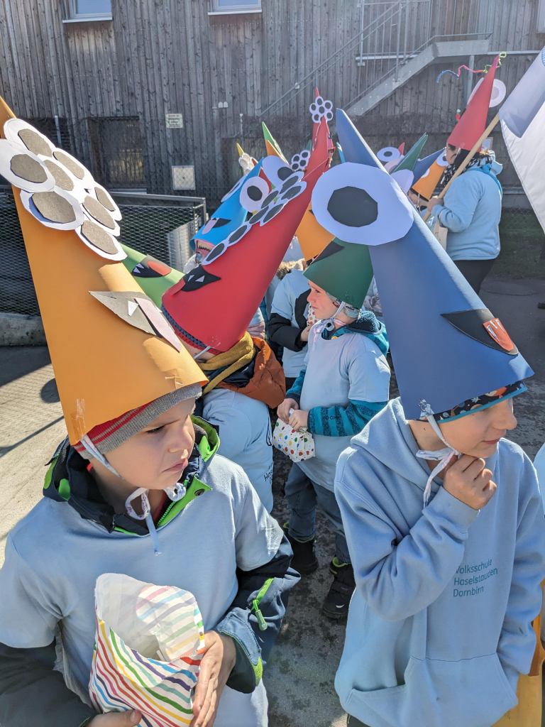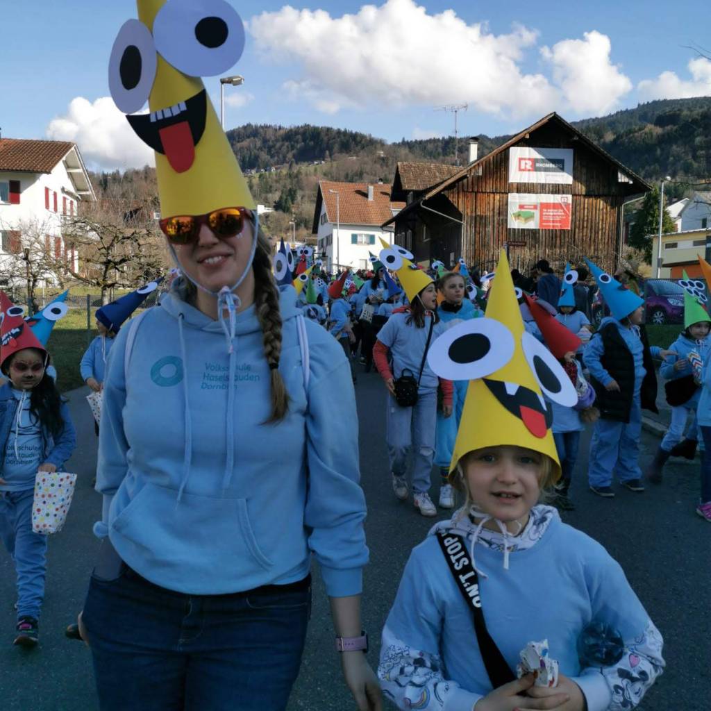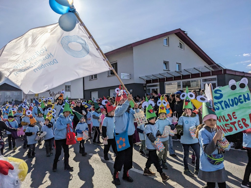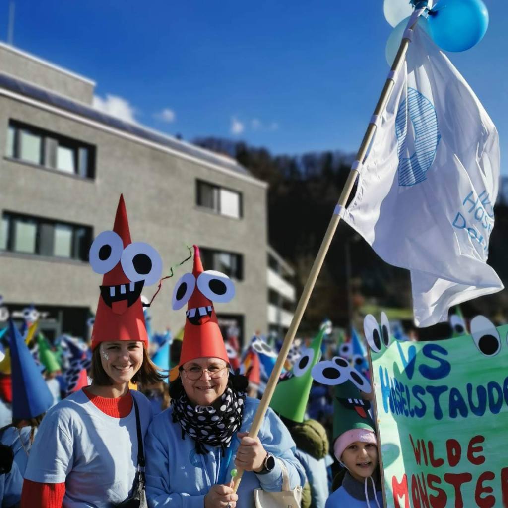 Wie im Jahr zuvor fand der Faschingsumzug in Haselstauden wieder bei traumhaften Wetter statt. Nach der „Befreiung“ der Kinder am späten Vormittag durch die Faschingszunft ging es um 13:30Uhr für die Schulkinder weiter. An ihrem jeweiligen Treffpunkt verwandelten sich die Klassen in „wilde Monster“ – ihre Kostüme, die sie in den Tagen zuvor gemeinsam gebastelt haben.
