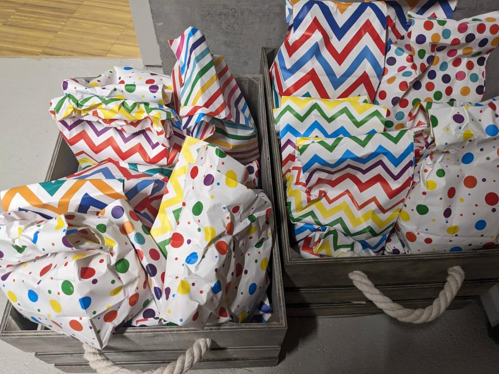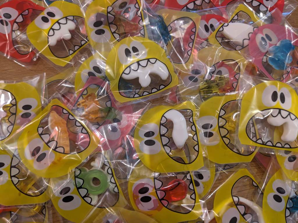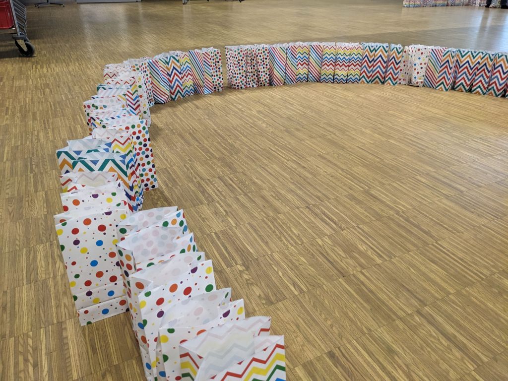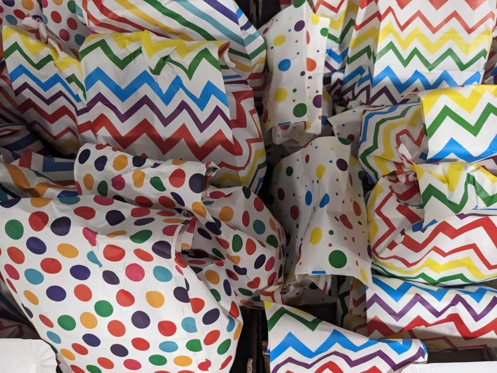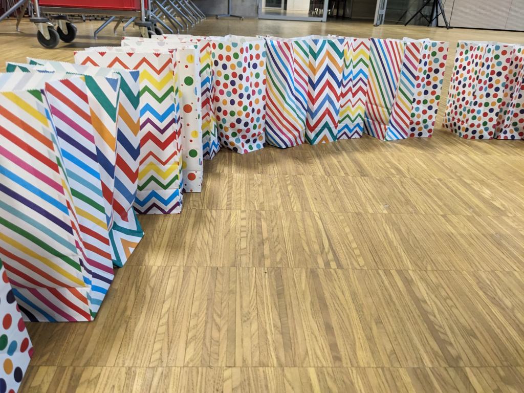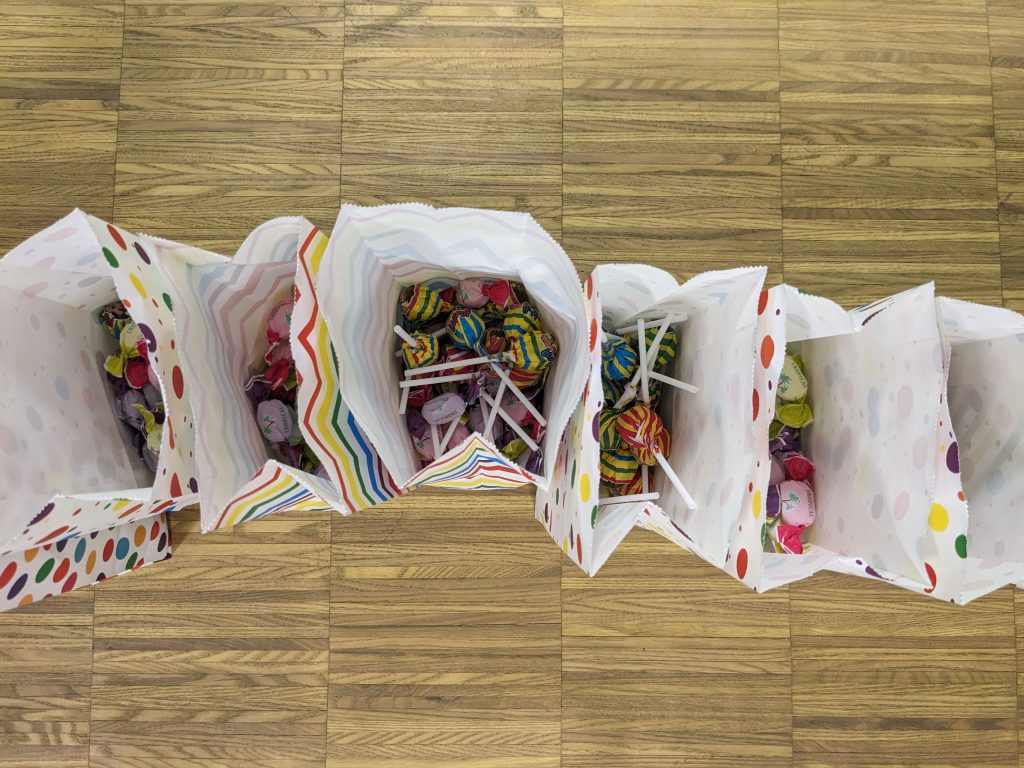 Auch erhielten die Kinder und Lehrpersonen ihre Tüten mit Zückerle zum streuen. Hier ein Eindruck von den Mengen: