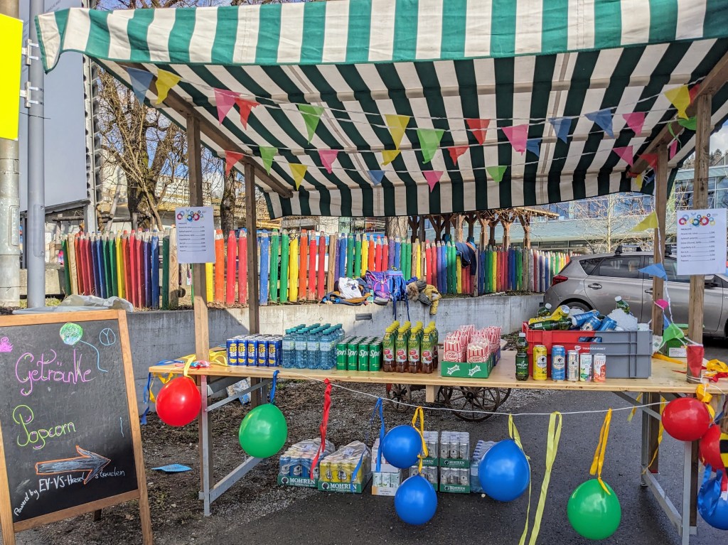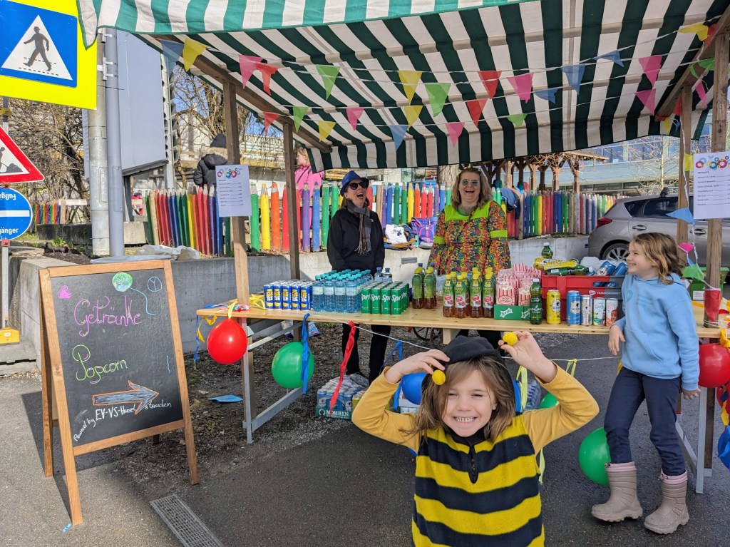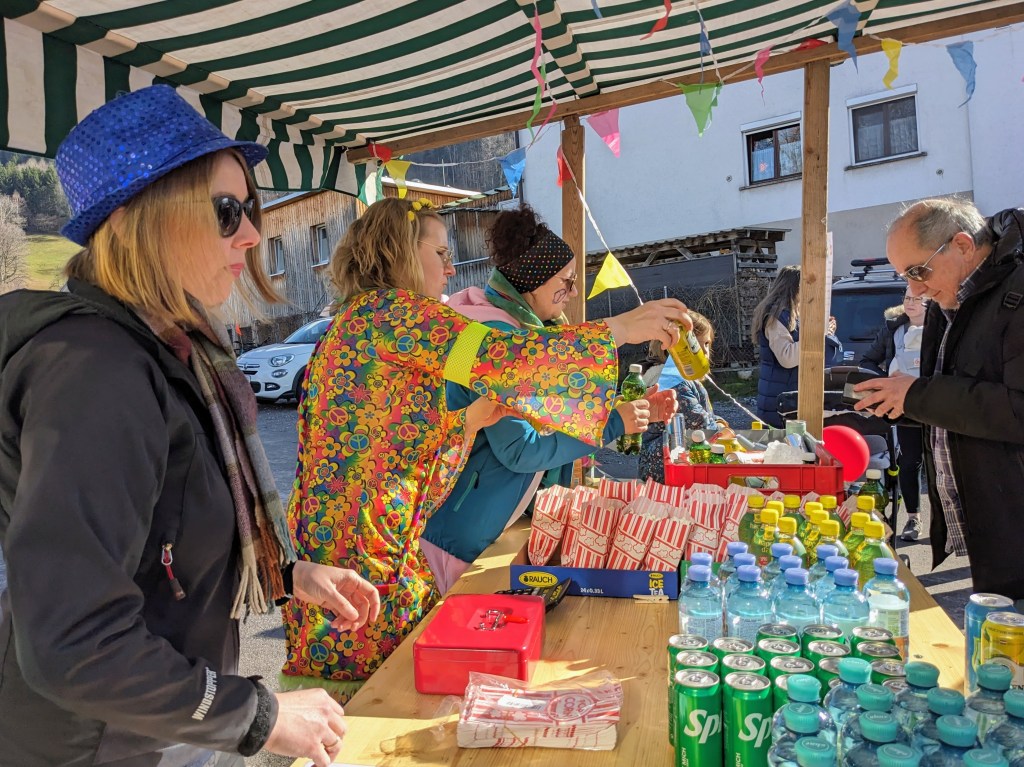 Während des Umzuges erfreuten sich sie Besucher am Rand über Getränke und Popcorn die an einem Stand betreut vom Elternverein verkauft wurden.