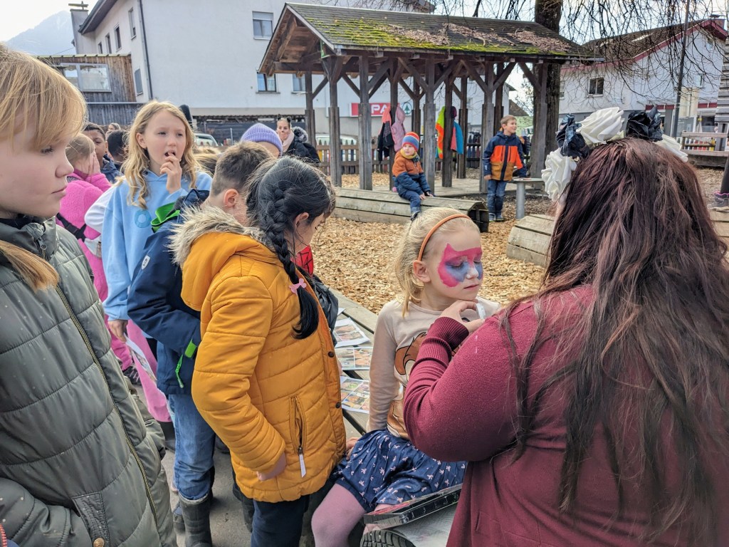 Die Kinder die etwas früher beim Treffpunkt erschienen sind, hatten noch spontan die Möglichkeit sich Schminken zu lassen. Vielen Dank für die Überraschung!