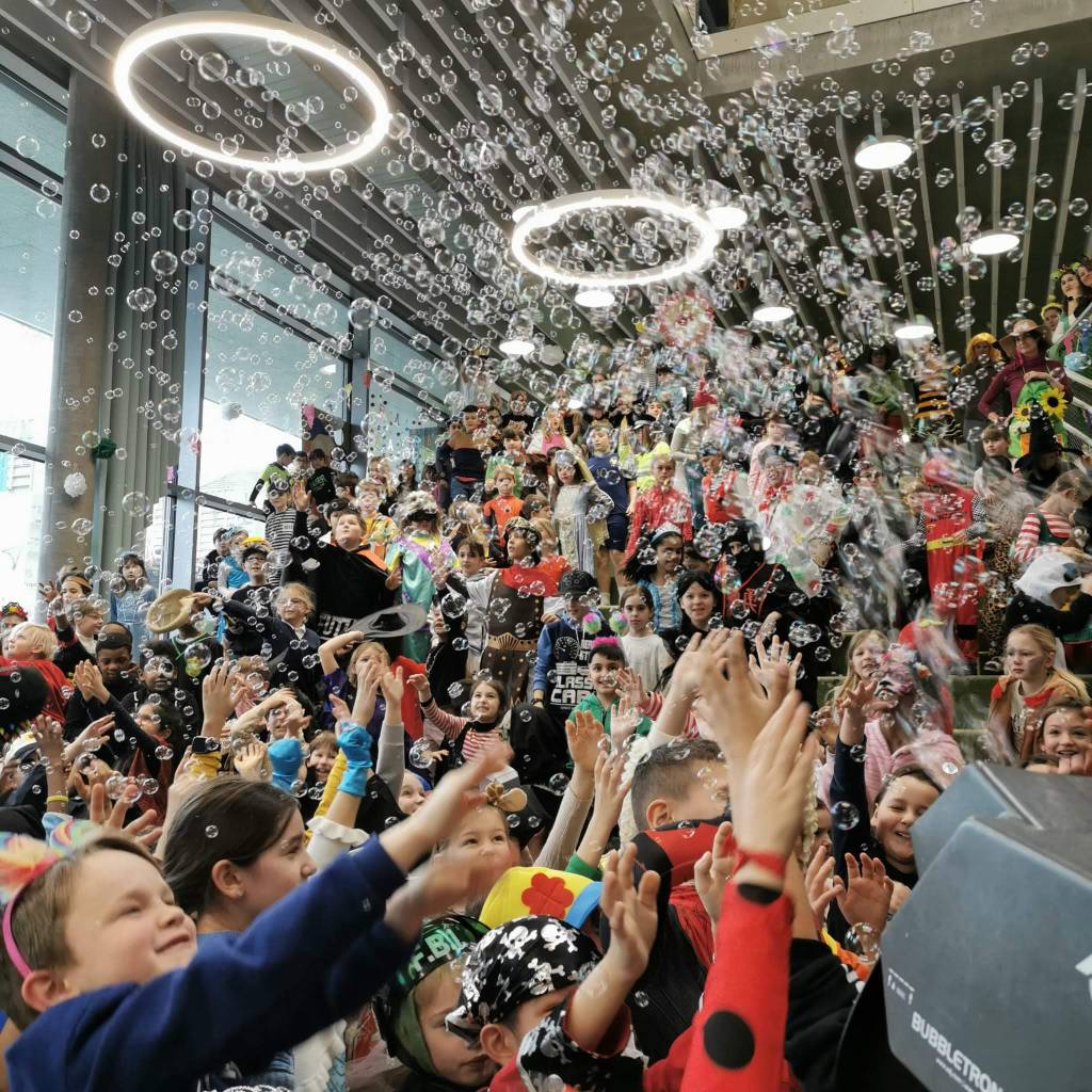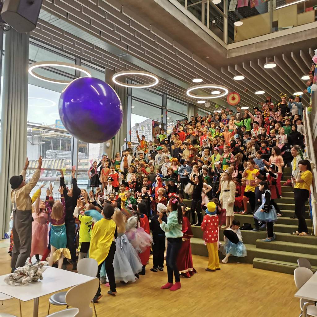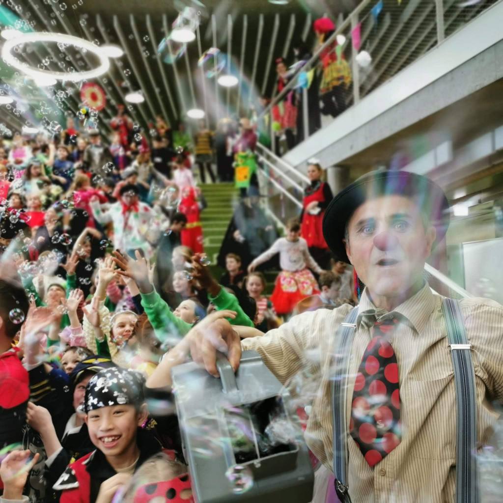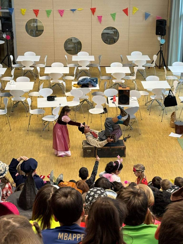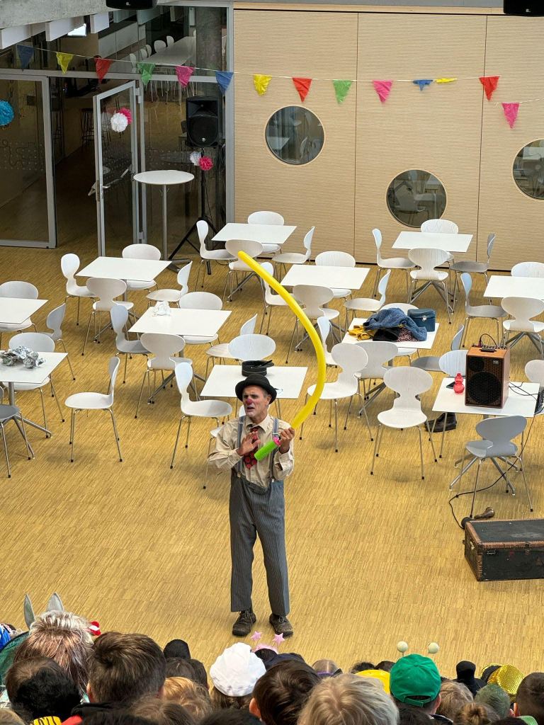 Am Rosenmontag besuchte uns Clown Pompo mit einer spektakulären Show. Alle Kinder und Lehrpersonen waren verkleidet und freuten sich sehr über seine Aufführung. Clown Pompo begeisterte uns mit jonglieren, kleinen Zaubereien und lustigen Kunststücken. Glückliche, strahlende Augen und lautes Lachen hörte und sah man in der ganzen Schule!