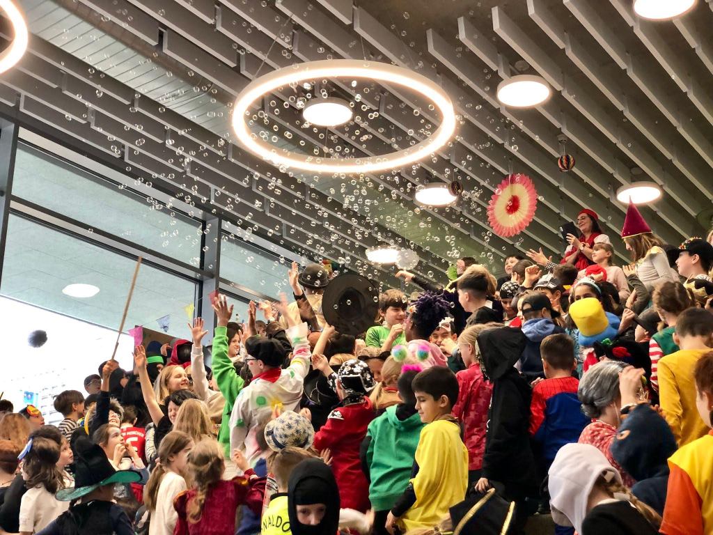In den Lernquartieren wurde anschließend ordentlich Fasching gefeiert und mit einer Polonaise durch das Schulhaus endete der Vormittag.