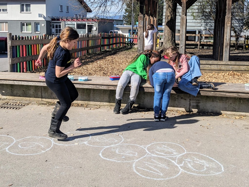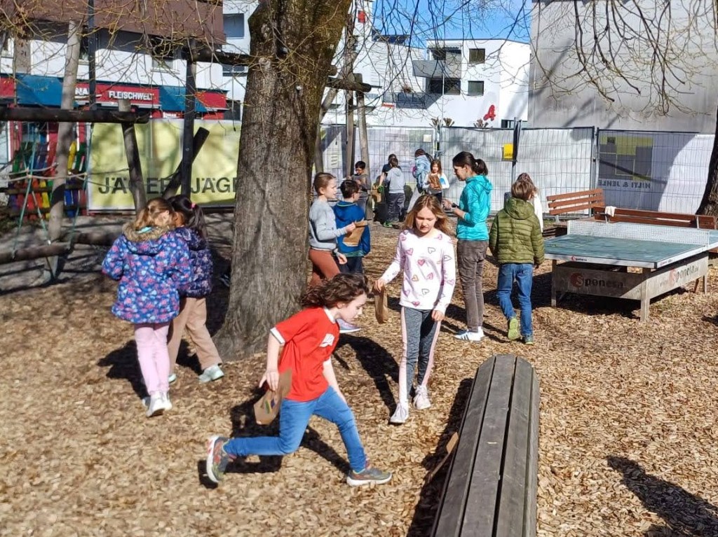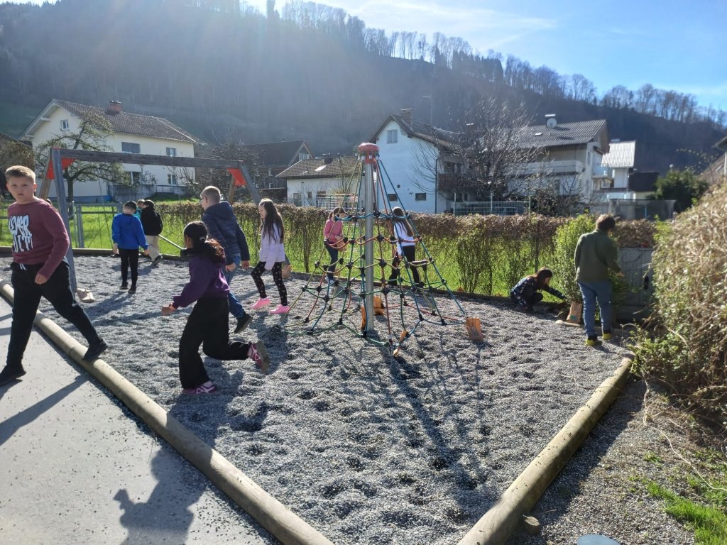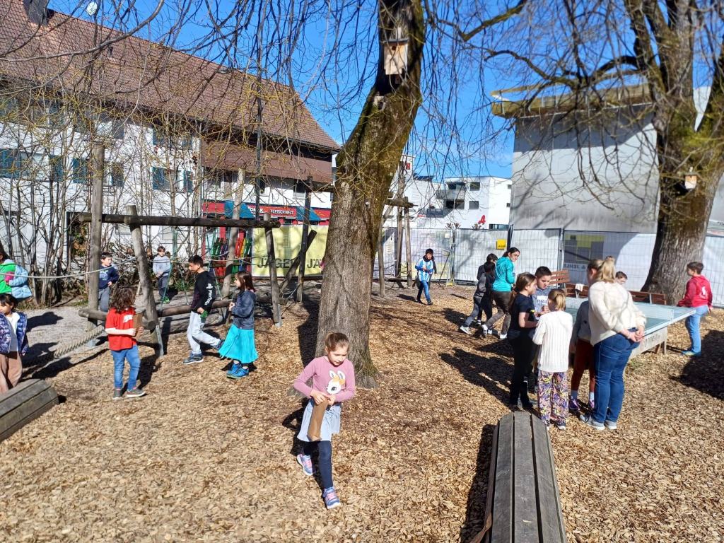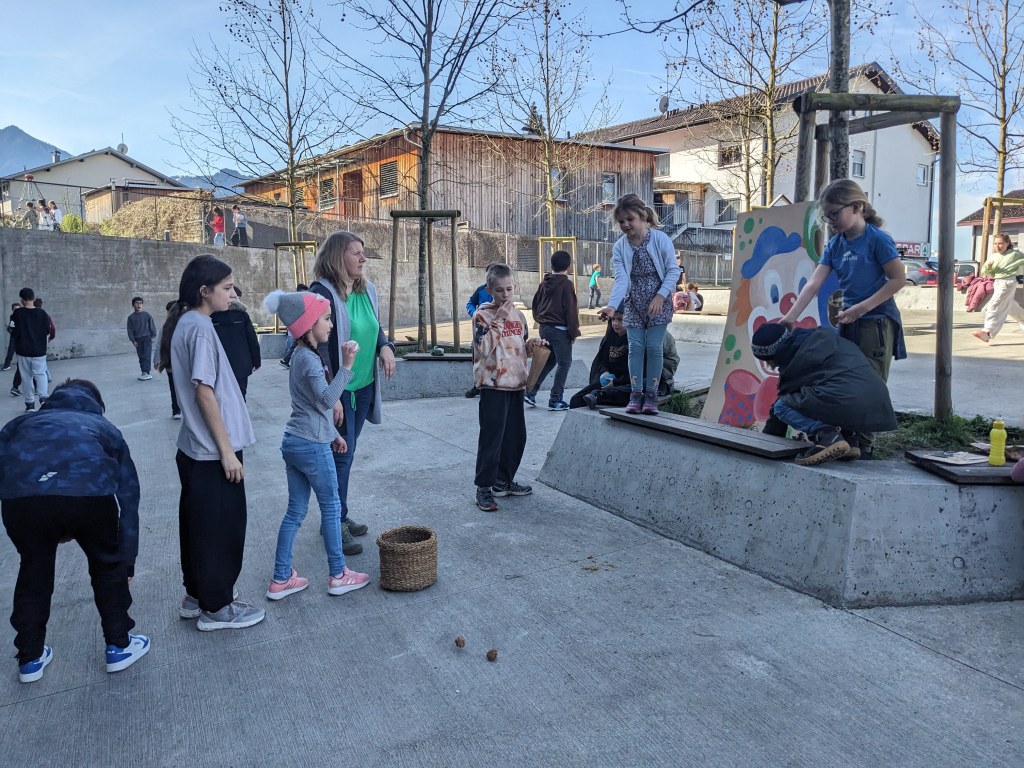 Im Anschluss lud bestes Wetter in der großen Pause zu Spaß und Spiel am Pausenhof ein: bei Dosenwerfen, Hüpfspielen, Zielwerfen oder einfach die Osterjause genießen verging die Zeit viel zu schnell.