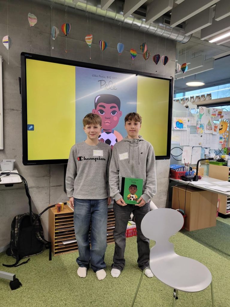 Wir haben etwas über Kamala Harris, Pelé, Neil Armstrong, Zaha Hadid, Michele Obama und Nelson Mandela erfahren und konnten am Ende viele Fragen stellen, die wir zusammen beantwortet haben.