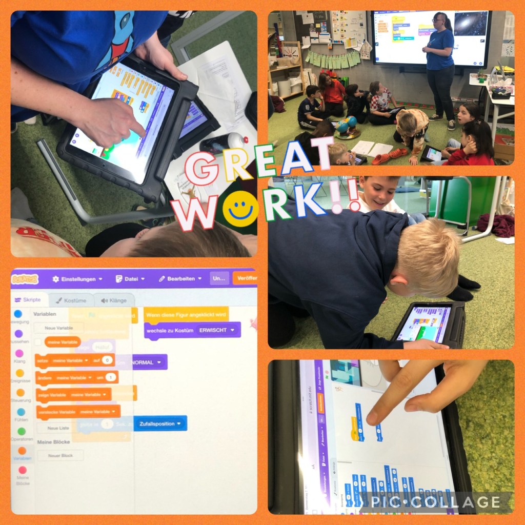 Die vergangenen zwei Tage konnten wir mit Tamara von Code4talents einen Einblick in das Programm Scratch werfen. In Zweierteams haben wir gestern kleine Geschichten animiert und besprochen wie welche Aktionen der Animation bearbeitet werden müssen.