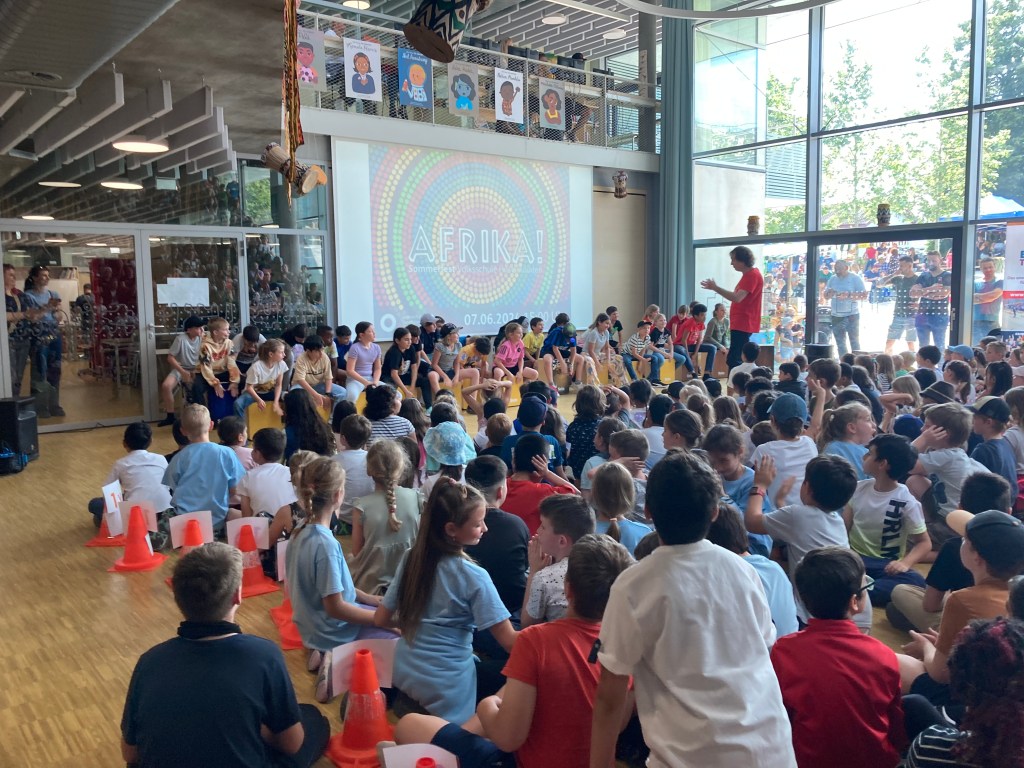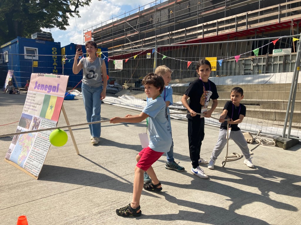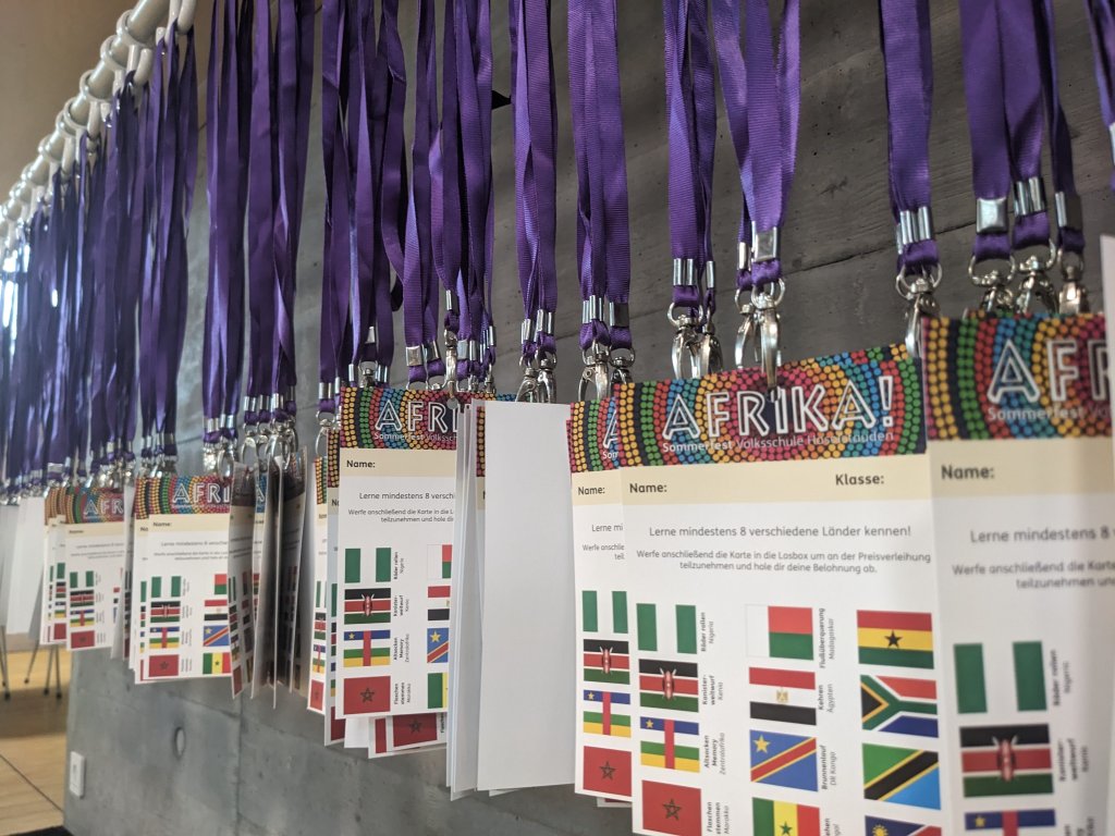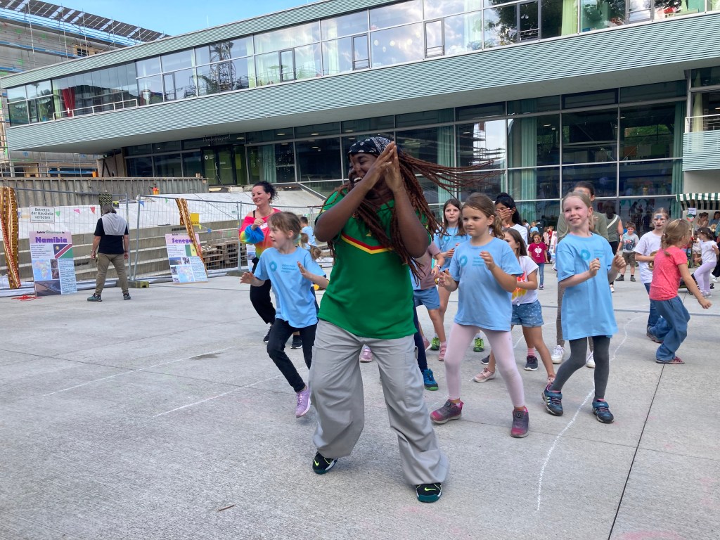 12 afrikanische Länder konnten die Schüler und Schülerinnen insgesamt kennenlernen. Zu jedem Land gab es eine passende Spielstation, die von dem Lehrpersonal betreut wurden: Räder rollen (Nigeria), Kanisterweitwurf (Kenia), Altsocken-Memory (Zentralafrika), Flaschen stemmen (Marokko), Flußüberquerung (Madagaskar), Kehren (Ägypten), Brunnenlauf (DR Kongo), Tauziehen (Senegal), Fahrrad (Ghana), Fußball (Südafrika), Gewürze (Tansania) und Seilspringen (Namibia).