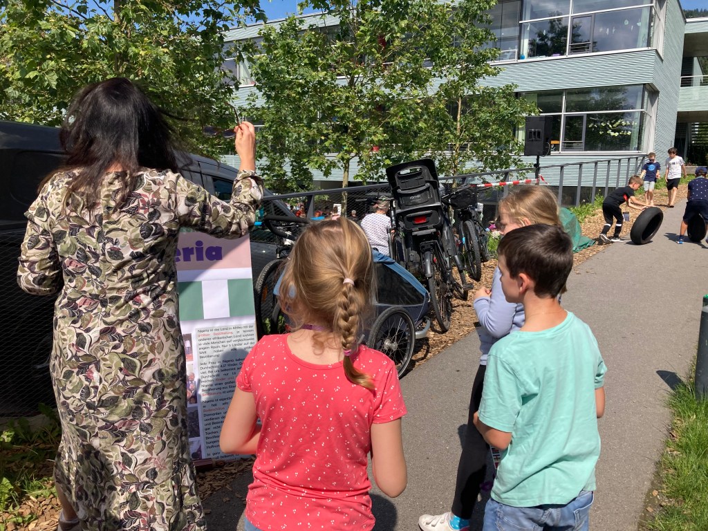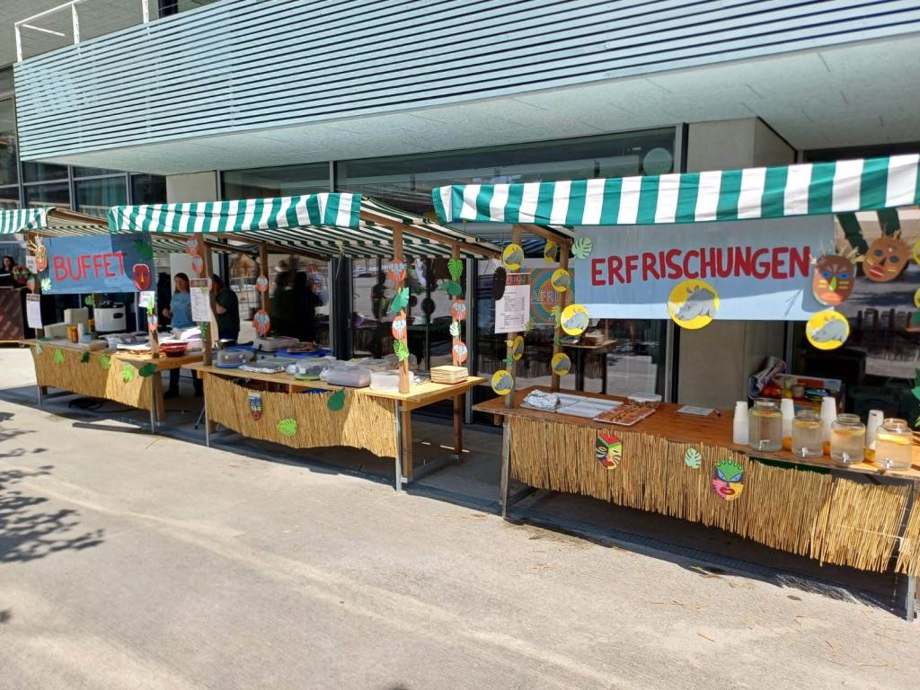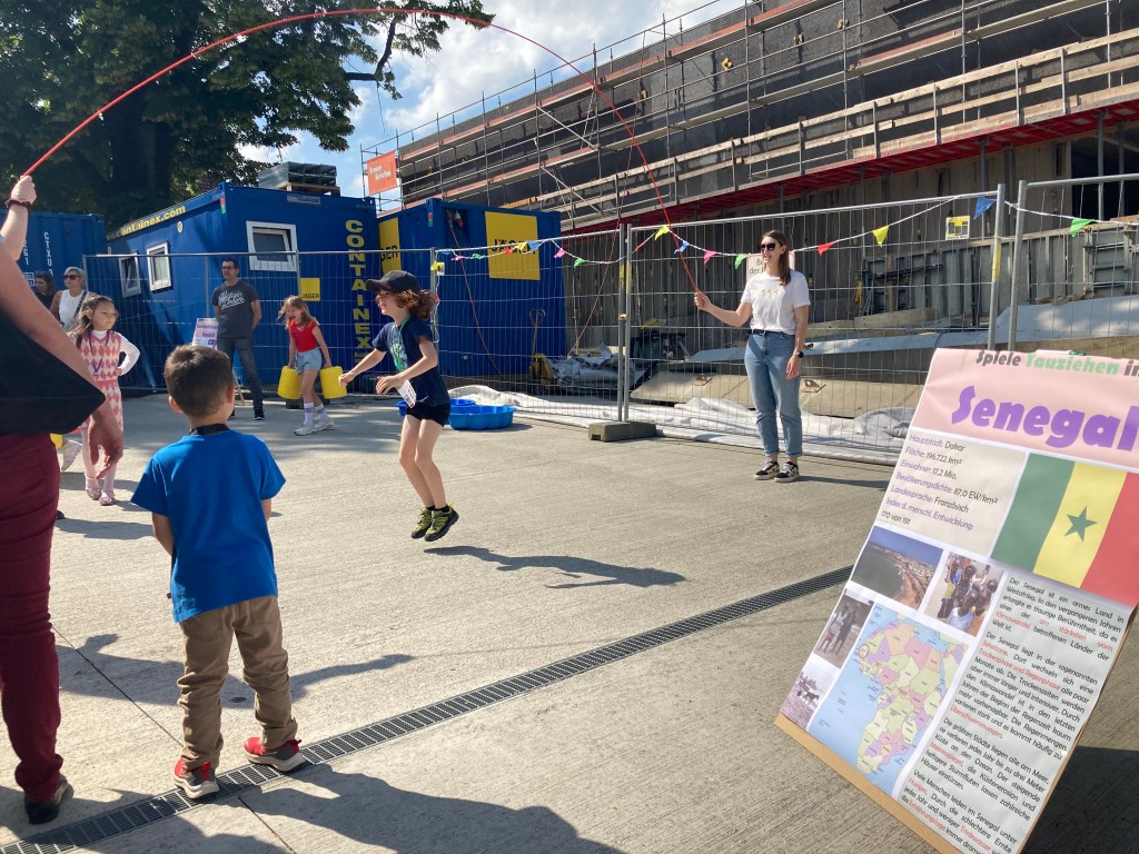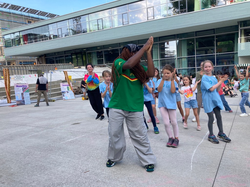 12 afrikanische Länder konnten die Schüler und Schülerinnen insgesamt kennenlernen. Zu jedem Land gab es eine passende Spielstation, die von dem Lehrpersonal betreut wurden: Räder rollen (Nigeria), Kanisterweitwurf (Kenia), Altsocken-Memory (Zentralafrika), Flaschen stemmen (Marokko), Flußüberquerung (Madagaskar), Kehren (Ägypten), Brunnenlauf (DR Kongo), Tauziehen (Senegal), Fahrrad (Ghana), Fußball (Südafrika), Gewürze (Tansania) und Seilspringen (Namibia).