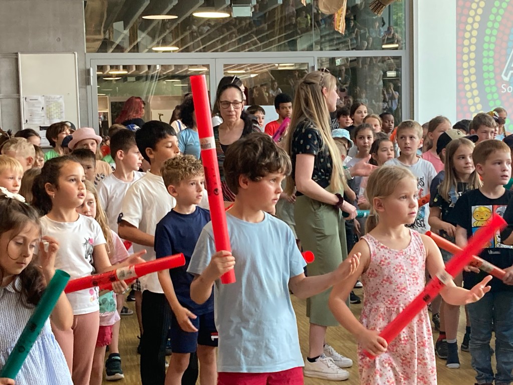 Zum Abschluss des Konzertes spielten dann nocheinmal alle Kinder zusammen mit den Boomwhackers.