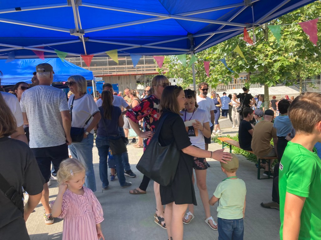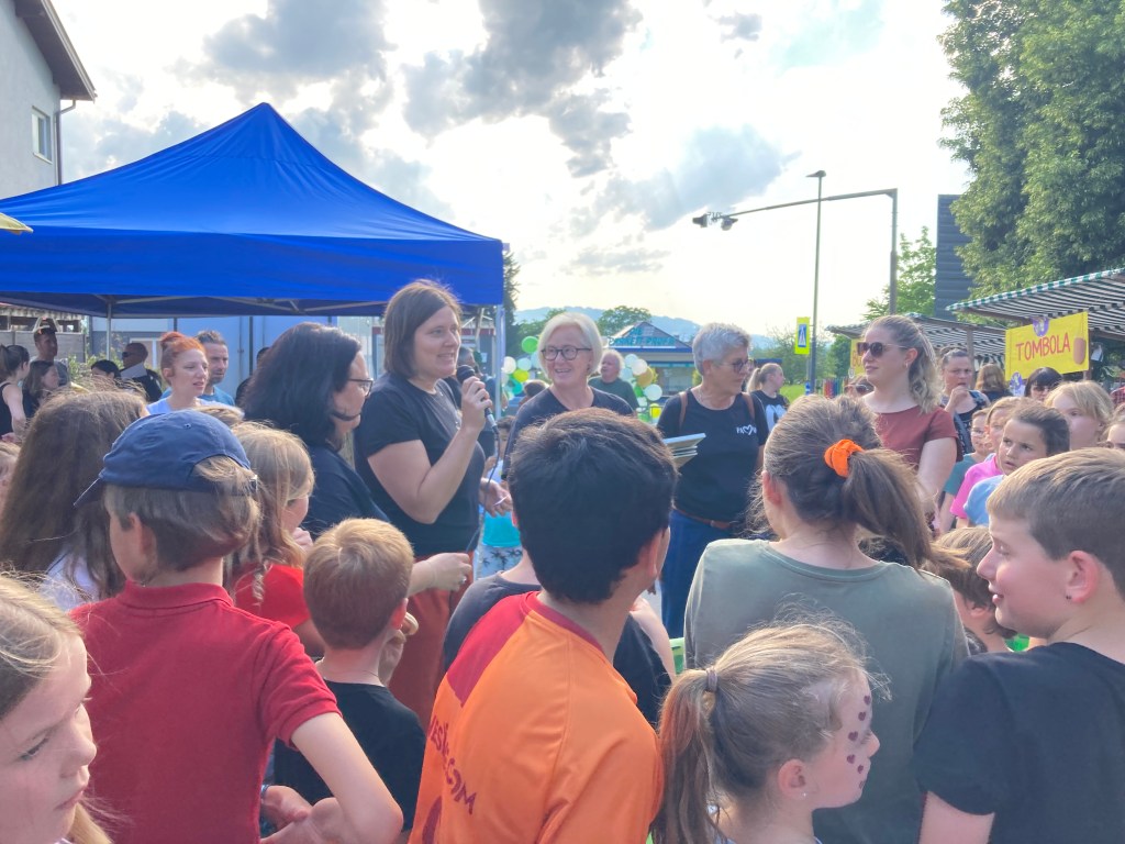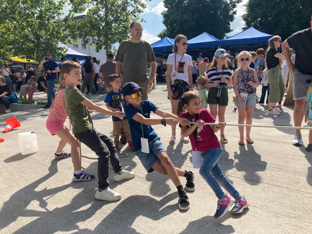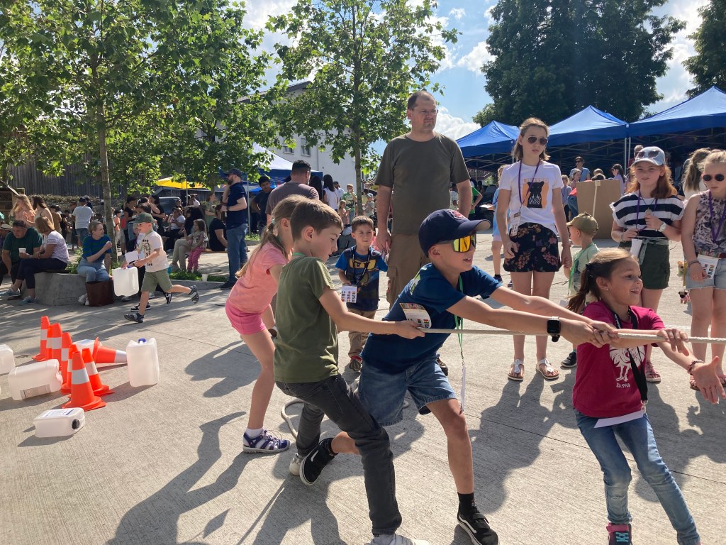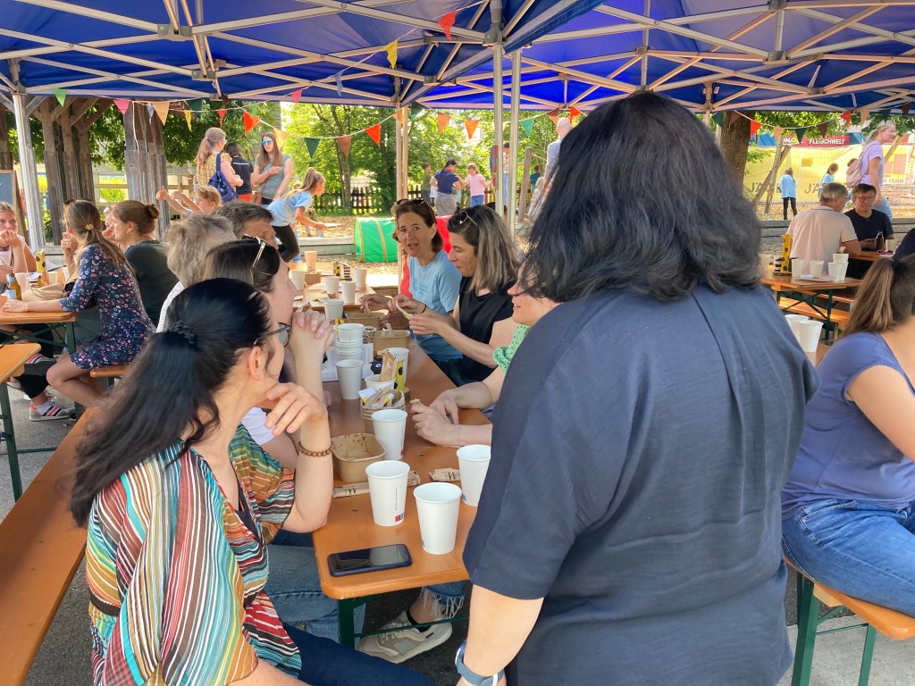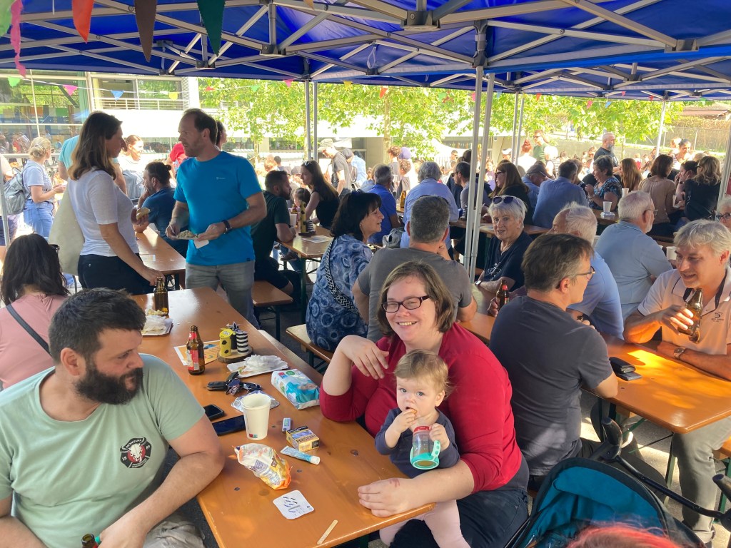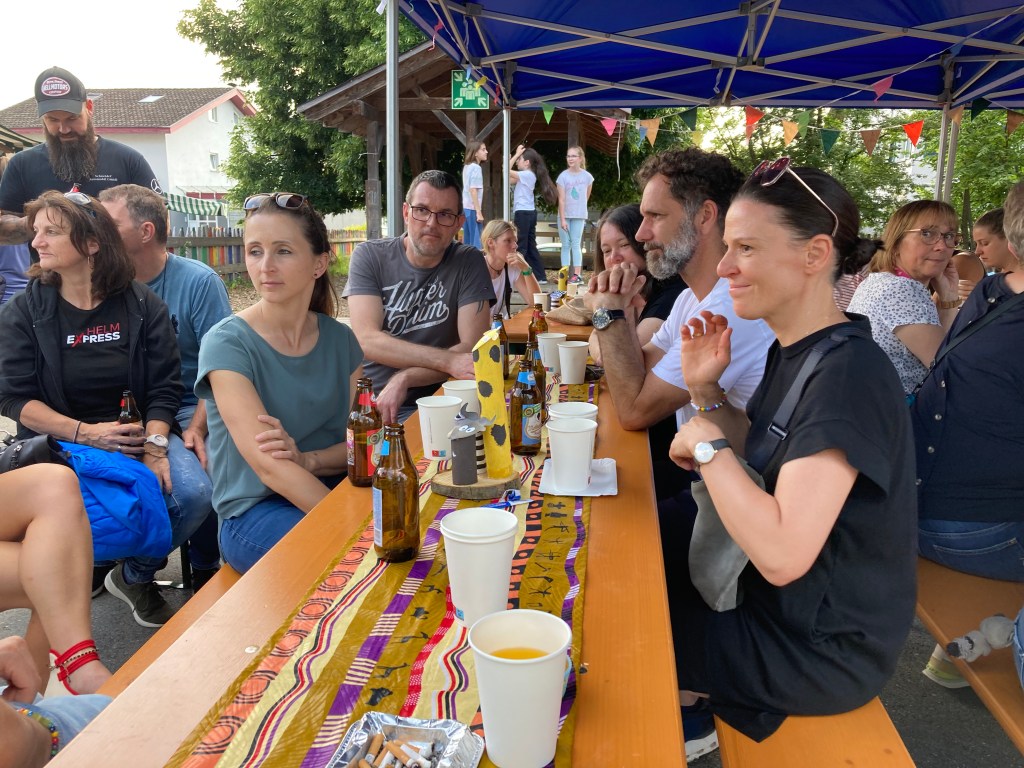 Während die Kinder die Spielstationen bestritten, genossen die Eltern, Geschwister, Verwandte oder Freunde das zum Glück pünktlich gekommene gute Wetter mit Speisen und Getränken beim gemütlichen Besammensein.