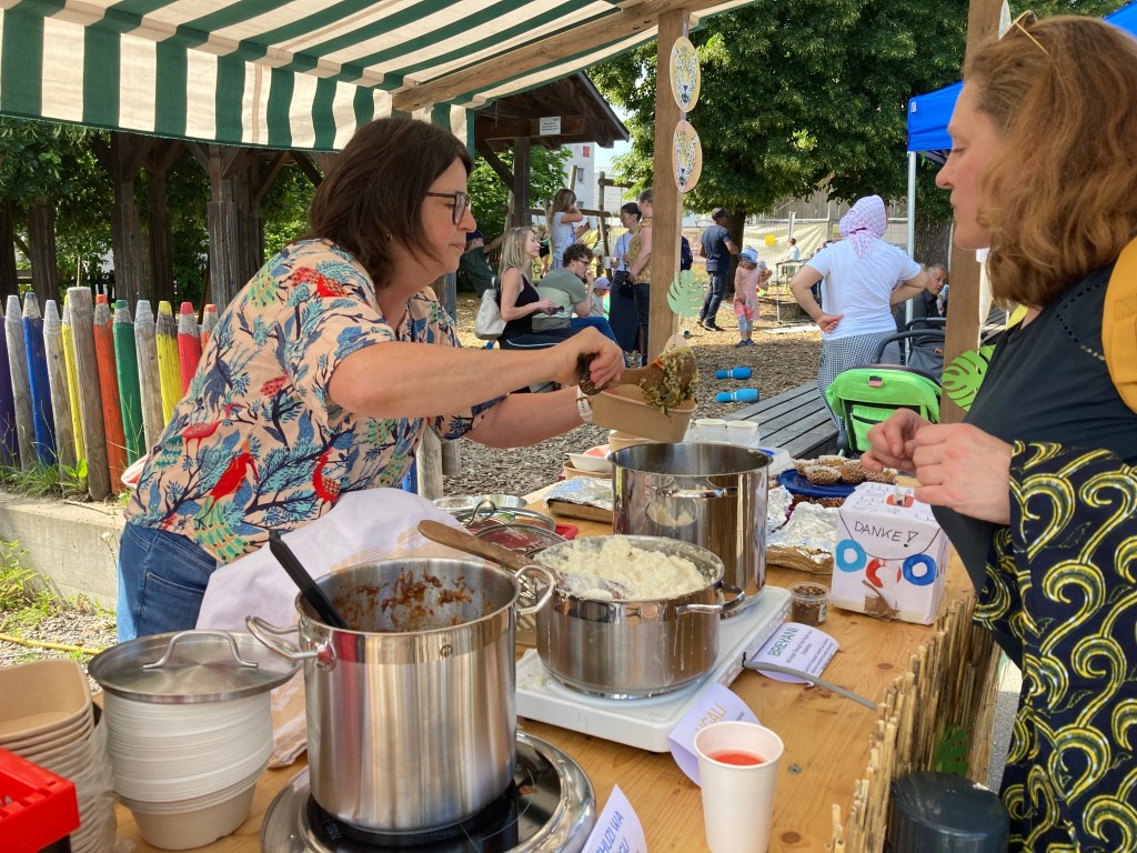 Passend zum Thema Afrika konnten spezielle afikanische Eintöpfe und Speisen am afrikanischen Buffet von Veronika Geiger probiert werden.