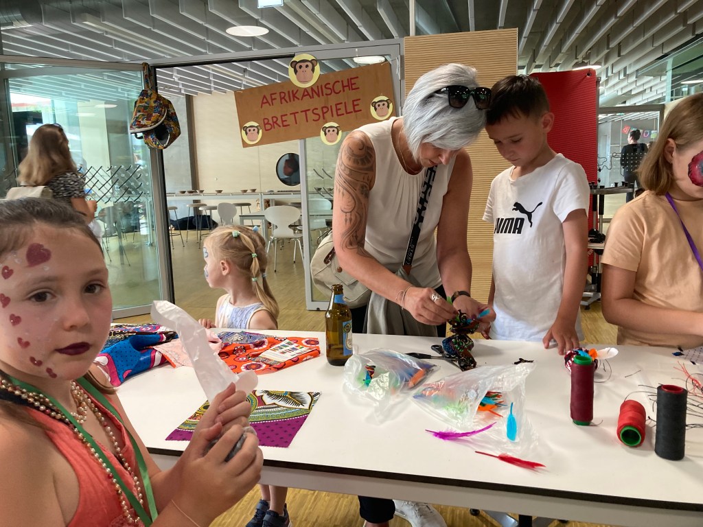 Bei der Tombola konnten afrikanische Spiele, Masken, Trommeln und vieles mehr ergattert werden. Einiges davon ist in den vergangenen Wochen von den Schülerinnen und Schülern im Werkunterreicht gebastelt worden.