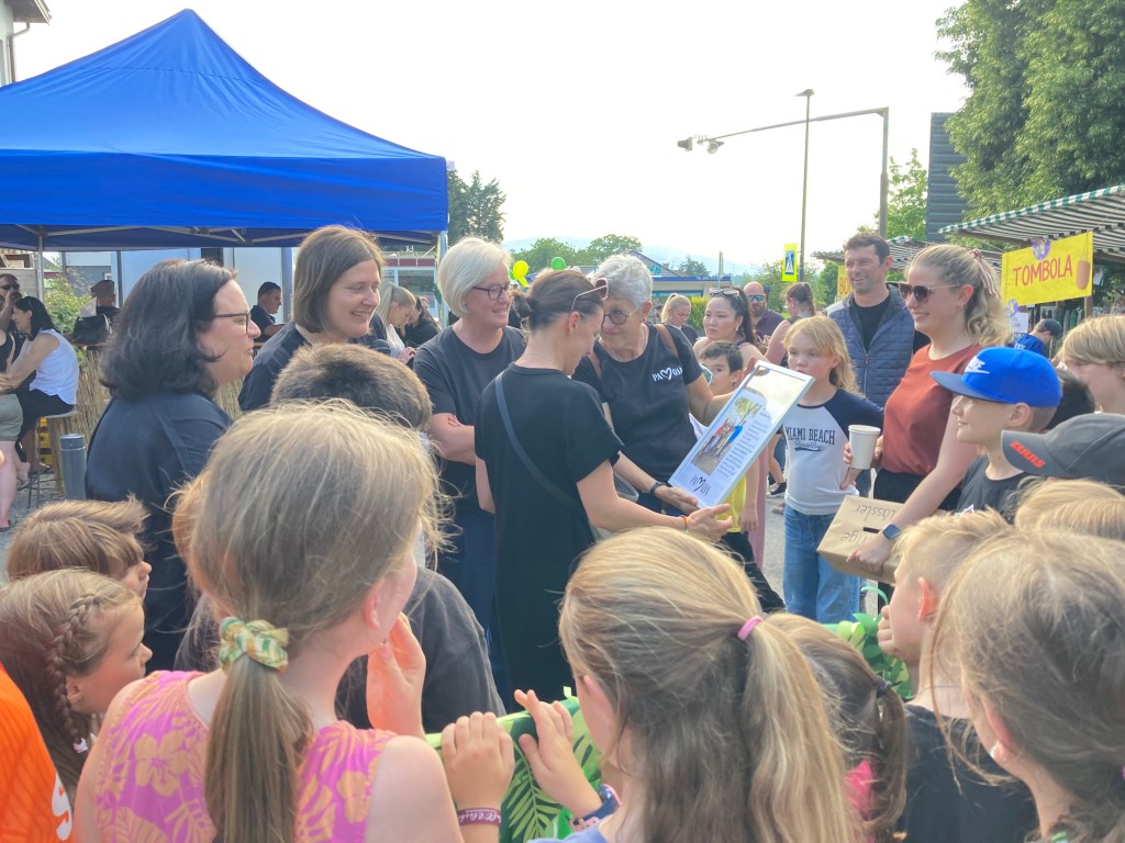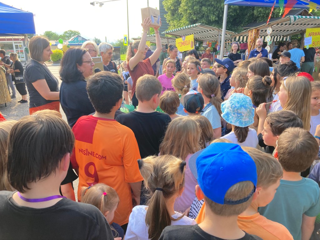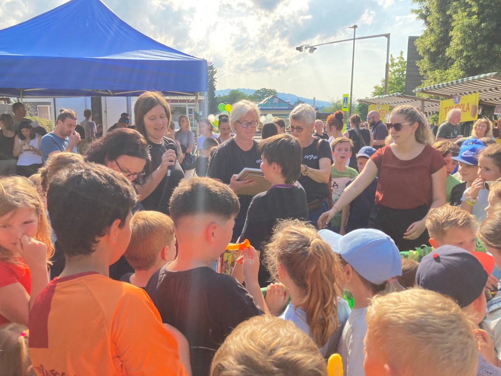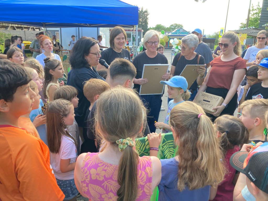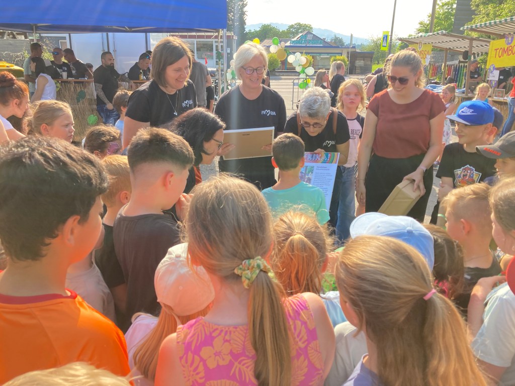 Nach 8 erfolgreich absolvierten Stationen konnten die Schulkinder ihren Stempelpass bei der Direktorin Barbara Nußbaumer-Bonell und Stellvertreterin Marika Amann abgeben und ihre Belohnung abholen. Die Stempelpässe wurden in Sammelboxen gesammelt, aus denen im Anschluss die Gewinner des Hauptpreises gezogen wurden. Auch die zukünftigen Erstklässler durften die Challenge absolvieren und bekamen bereits nach 5 Stationen ihren Preis.