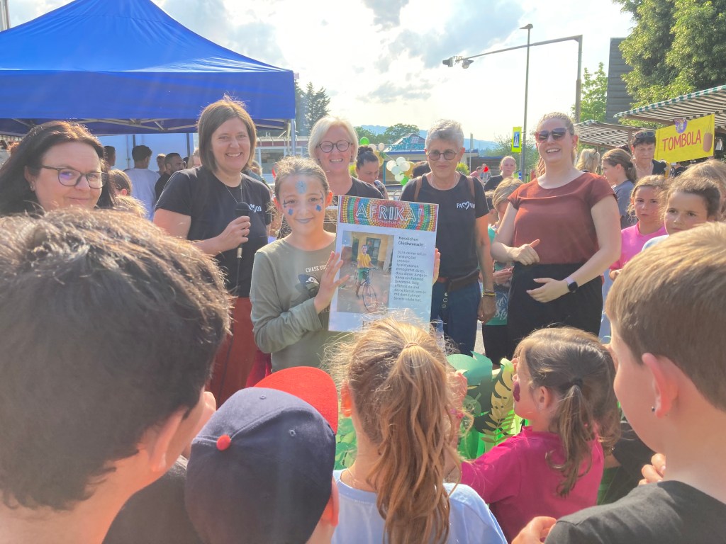 Aber nun war es soweit: Im Anschluss an die Afrika-Challenge wurden die Sieger der jeweiligen Klassenstufen gezogen und die Hauptpreise überreicht. Mit den Hauptpreisen (Schulpatenschaft, Fahrrad, Ziege,…) unterstützen die Gewinner und ihre jeweiligen Klassen Kinder und Familien in Afrika – organisiert von PAMOJA. Sie können sich schon jetzt über die erste Post oder Bilder aus Afrika freuen.