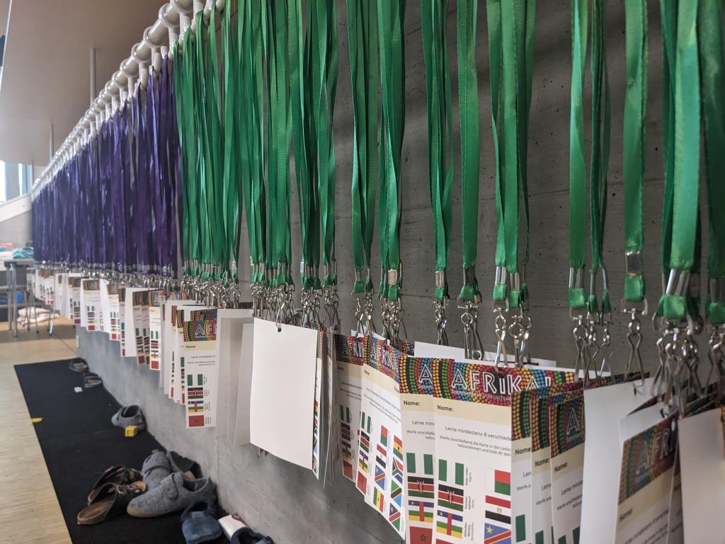 Nach dem Konzert startete gleich die große Afrika-Challenge. Dafür holten sich die Schulkinder zunächst ihren Stempelpass, die an der Garderobe aufgereiht auf sie warteten.