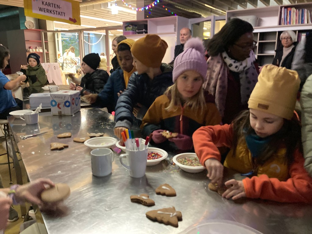 Auch das mittlerweile traditionelle Lebkuchen verzieren durfte in diesem Jahr nicht fehlen. Ehemalige Schülerinnen und Schüler der Volksschule haben den Kindern dabei geholfen.