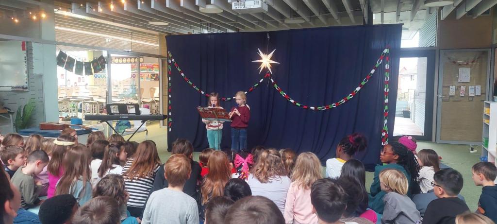 Jedes Lernquartier veranstaltete am letzten Schultag eine festliche Weihnachtsfeier. Die Schülerinnen und Schüler begeisterten mit Theateraufführungen, musikalischen Darbietungen, Gesang und Tanz. Es war ein schöner, festlicher Abschluss des Jahres, der alle in weihnachtliche Stimmung versetzte und auf die Ferien einstimmte.