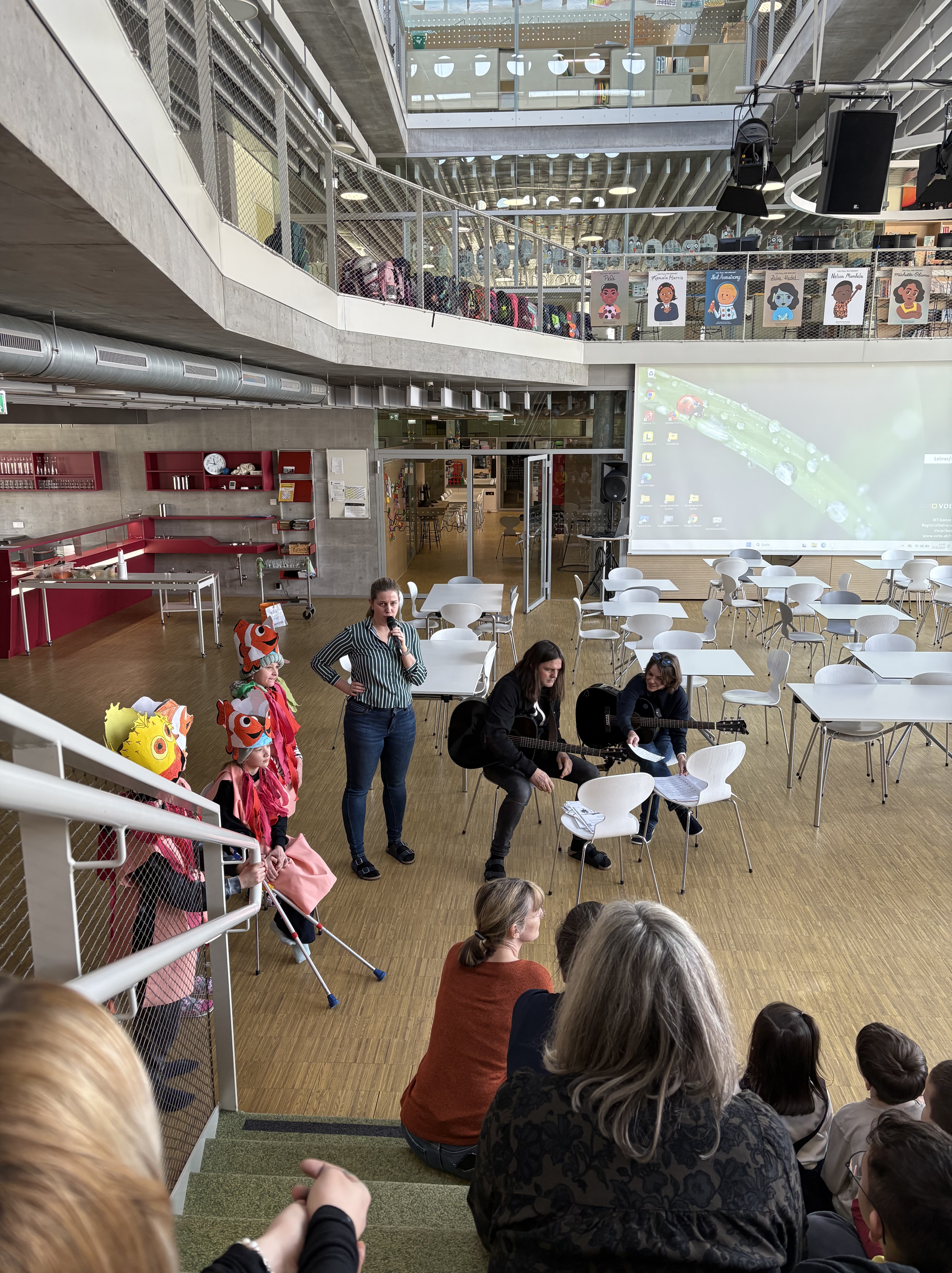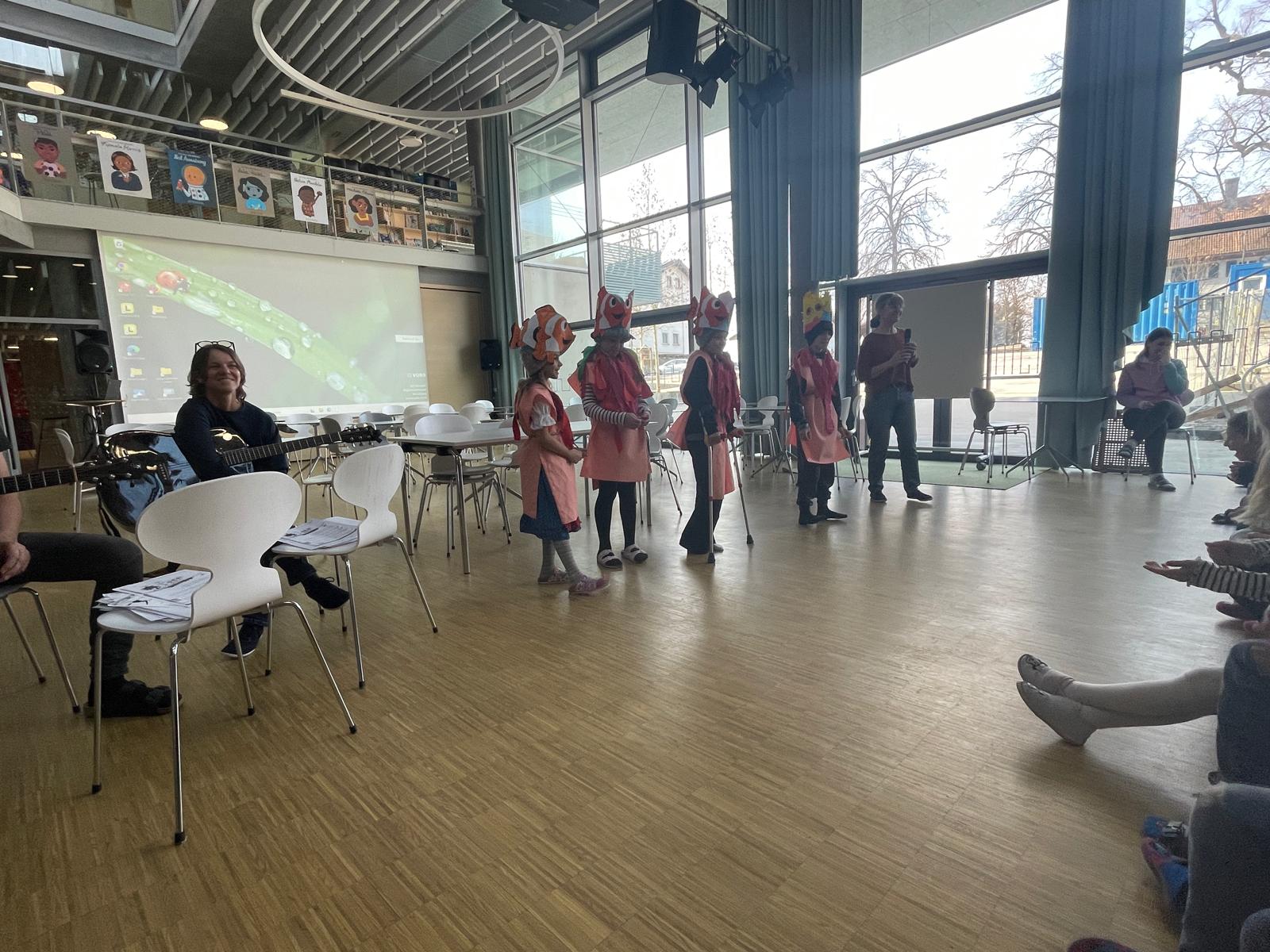 Zum Semesterabschluss versammelten sich alle Schüler und Lehrpersonen in der Aula. Die Semesterferien wurden mit herzlichen Gesangseinlagen eingeläutet. Alle stimmten kräftig mit ein und es herrschte eine tolle Stimmung in unserer Schule.