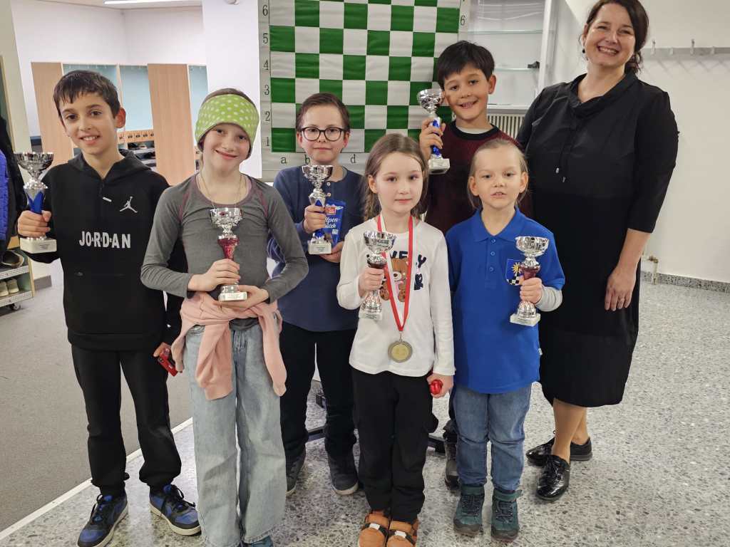 Vincent Grabher-Zschieschang gewann das Turnier souverän mit 6 aus 7 möglichen Punkten, Yusuf Kavas und Thomas Schmid folgten auf den Medaillenplätzen mit je 5,5/7. Borys besiegte alle Spieler aus den anderen Schulen, verlor die internen Duelle und landete am 7. Platz. Laura Maria Salzmann holte mit 3/7 Silber bei den Mädchen! Sehr gut gekämpft haben auch Samil Cabrerea-Jochum (3/7), Bruno Grabher-Märk (2,5/7), Nathanael Umundum (2/7), Felix Zeller (2/7) und Emir Yildirim (2/7).