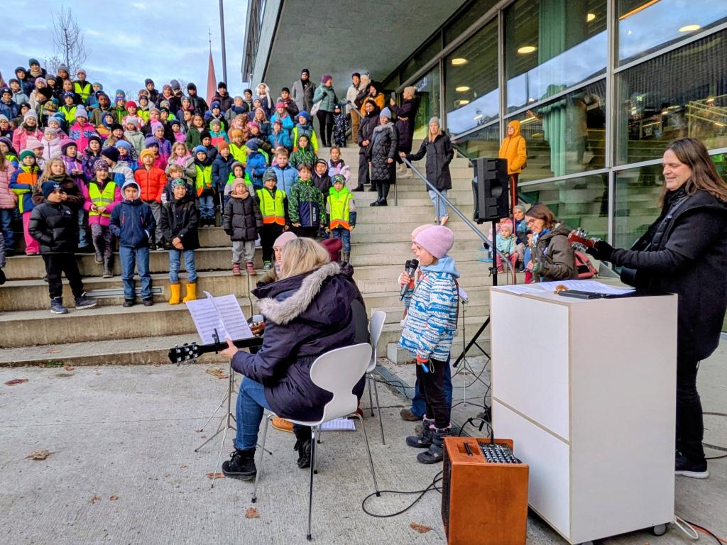 Vergangenen Freitag fand bei strahlendem Sonnenschein das diesjährige Lichterfest statt. Eröffnet wurde es durch Direktorin Barbara Nussbaumer-Bonell. Auch die Schulkinder begrüßten die Gäste mit einem fröhlichen „Schön, dass du da bist!“.