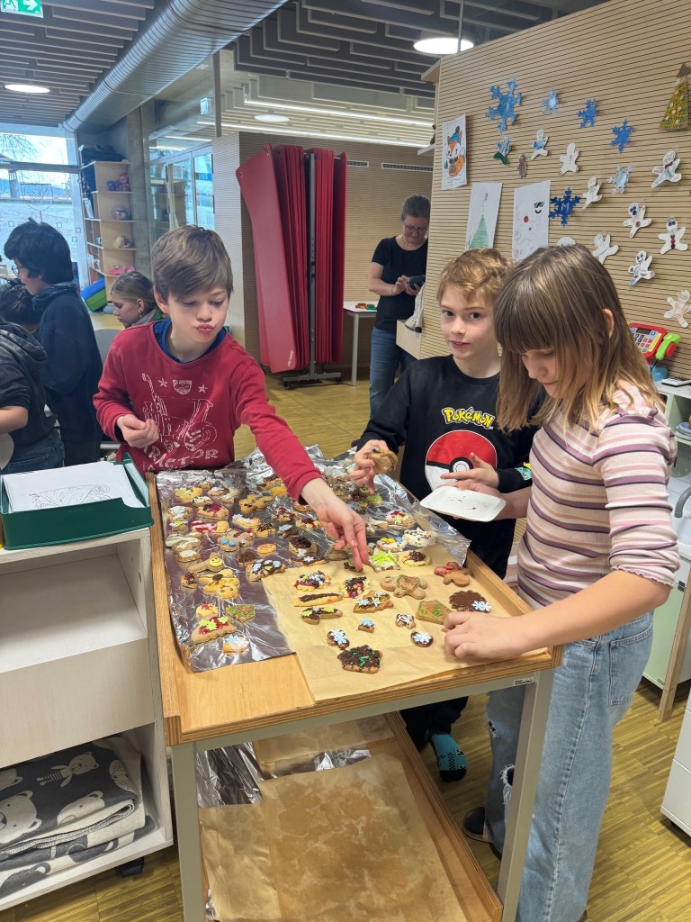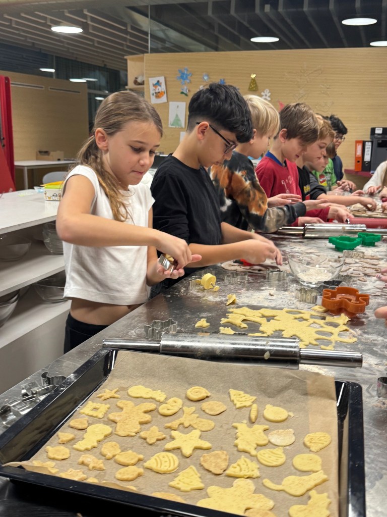 Täglich duftet es in unserer Schule nach Weihnachten. Unsere Schüler sind fleißige Weihnachtsbäcker. Die Küche ist belagert mit Teig, Schokolade und Streuseln. Mit viel Freude rollen sie den Teig aus, stechen Sterne, Herzen und Tannenbäume aus und verzieren die Plätzchen mit buntem Zuckerguss. Es wird gelacht, probiert und geholfen. So macht die Weihnachtsbäckerei allen großen Spaß und bringt echte Weihnachtsstimmung in unsere Schule.
