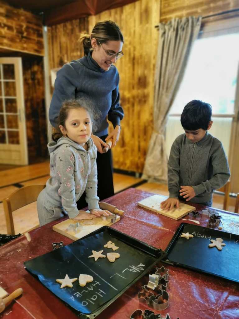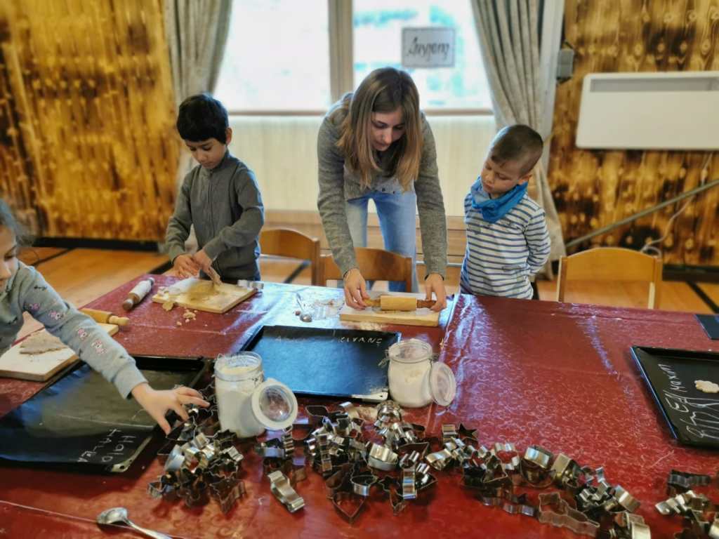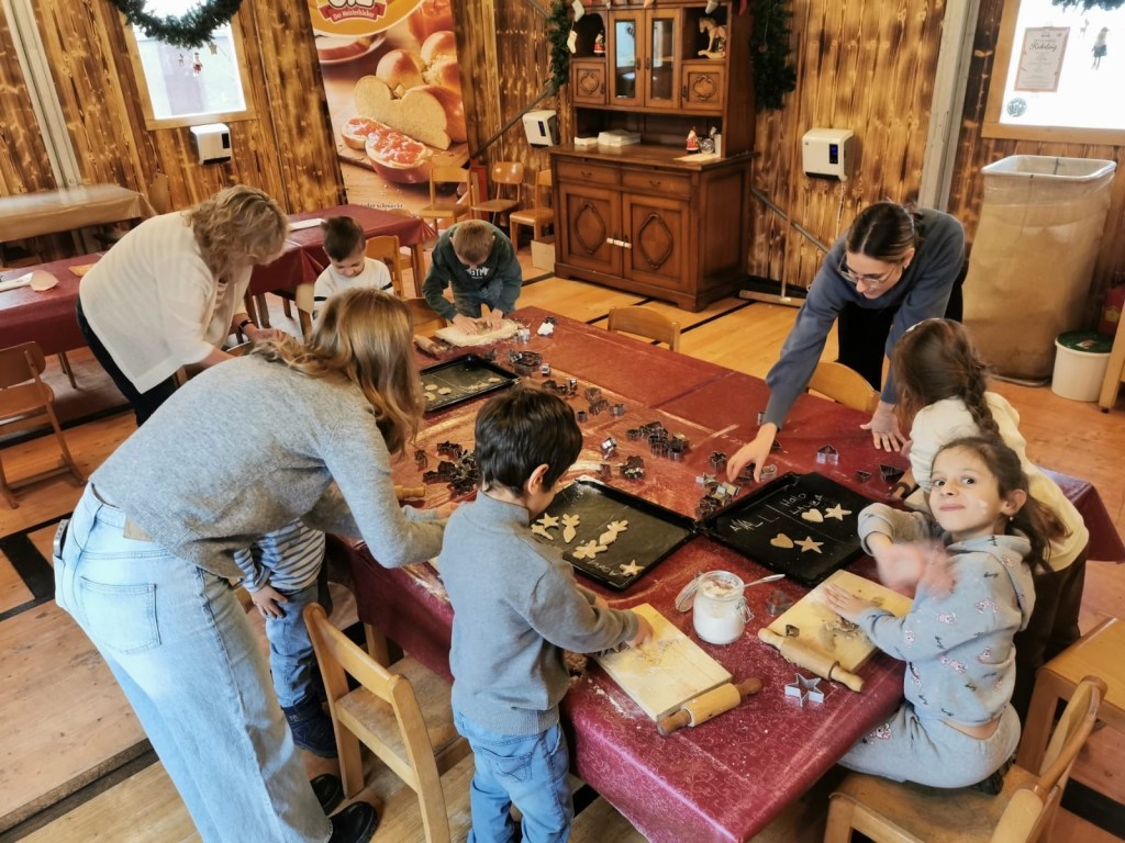 Unsere Raketenklasse machte sich sogar auf den Weg in die Stadt, um dort in der Backstube auf dem Weihnachtsmarkt zu backen. Einen ganzen Vormittag lang wurde geknetet, gerollt und ausgestochen. Mit viel Begeisterung und fleißigen Händen backten die Kinder tolle Kekse und waren stolz auf ihre Backkünste.