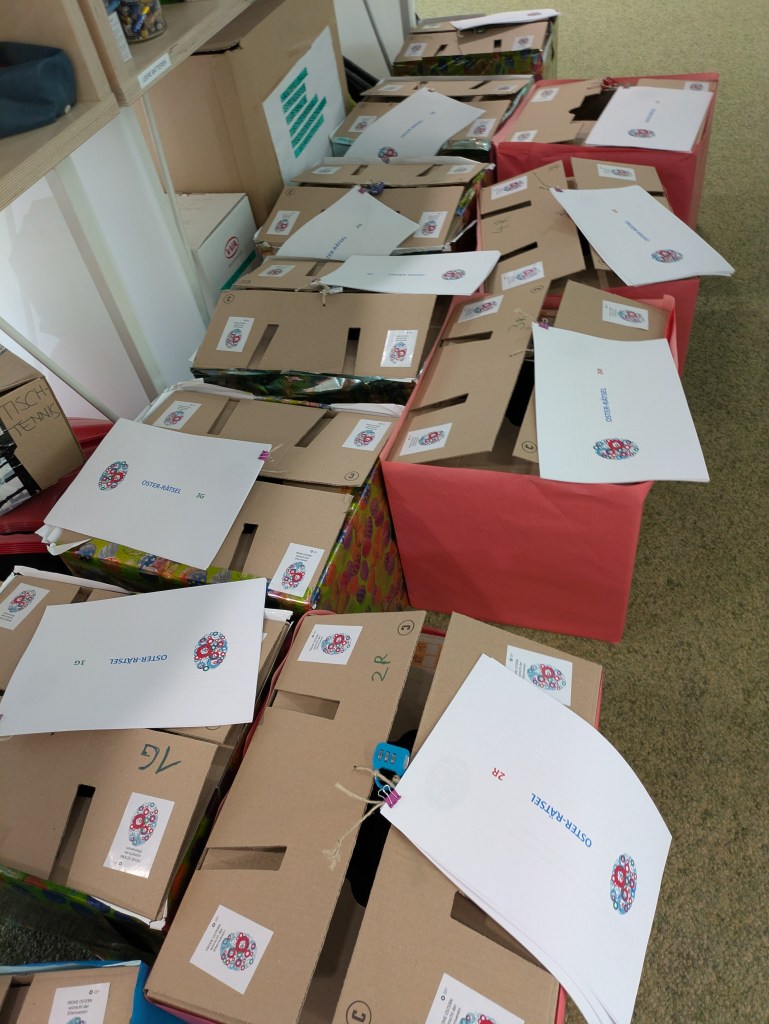 Nach der großen Pause begann das Osterrätsel: In der Klasse standen geheimnisvolle Schatztruhen, die mit komplizierten Zahlenschlössern verschlossen waren. Um an die Schätze zu gelangen, mussten die Schülerinnen und Schüler knifflige Rätsel lösen, versteckte Hinweise entdecken und clever kombinieren – jede Entdeckung brachte sie dem geheimen Zahlencode ein Stückchen näher.